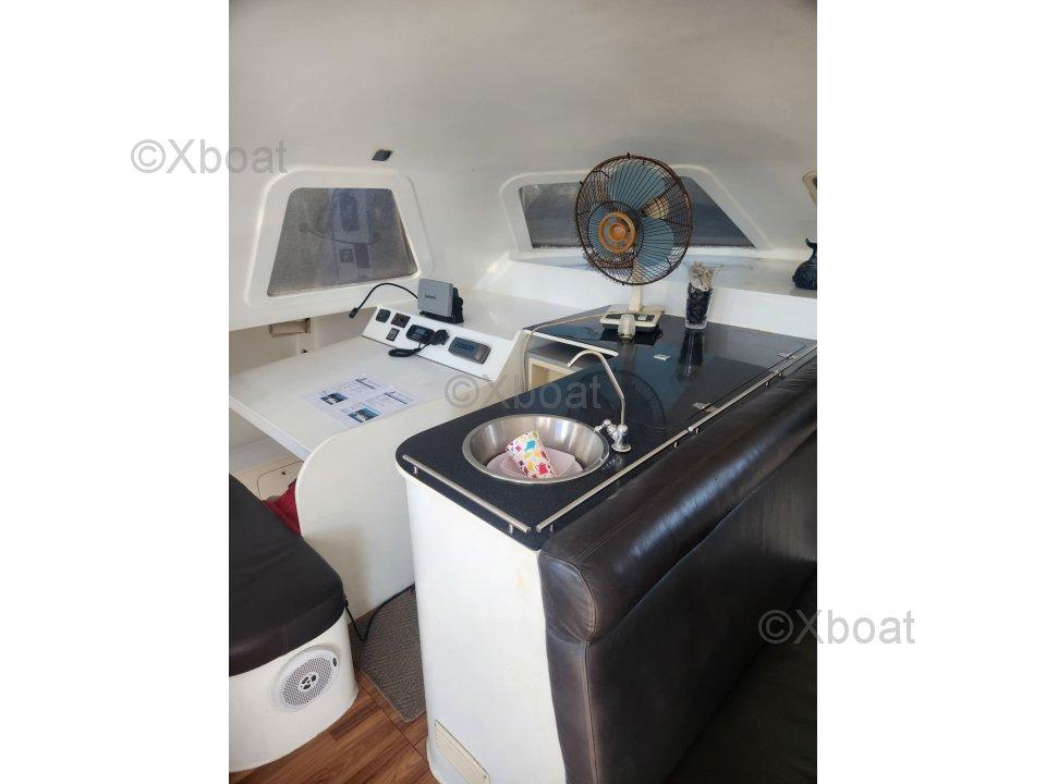 Je propose à la vente mon catamaran de croisière rapide, le SCHIONNING Wilderness 1320, construit sur un kit en sandwich West System époxy. Ce voilier a été construit en Afrique du Sud et se distingue par sa construction solide et son poids ultra léger de seulement 6,5 tonnes pour une longueur de 13,2 mètres.