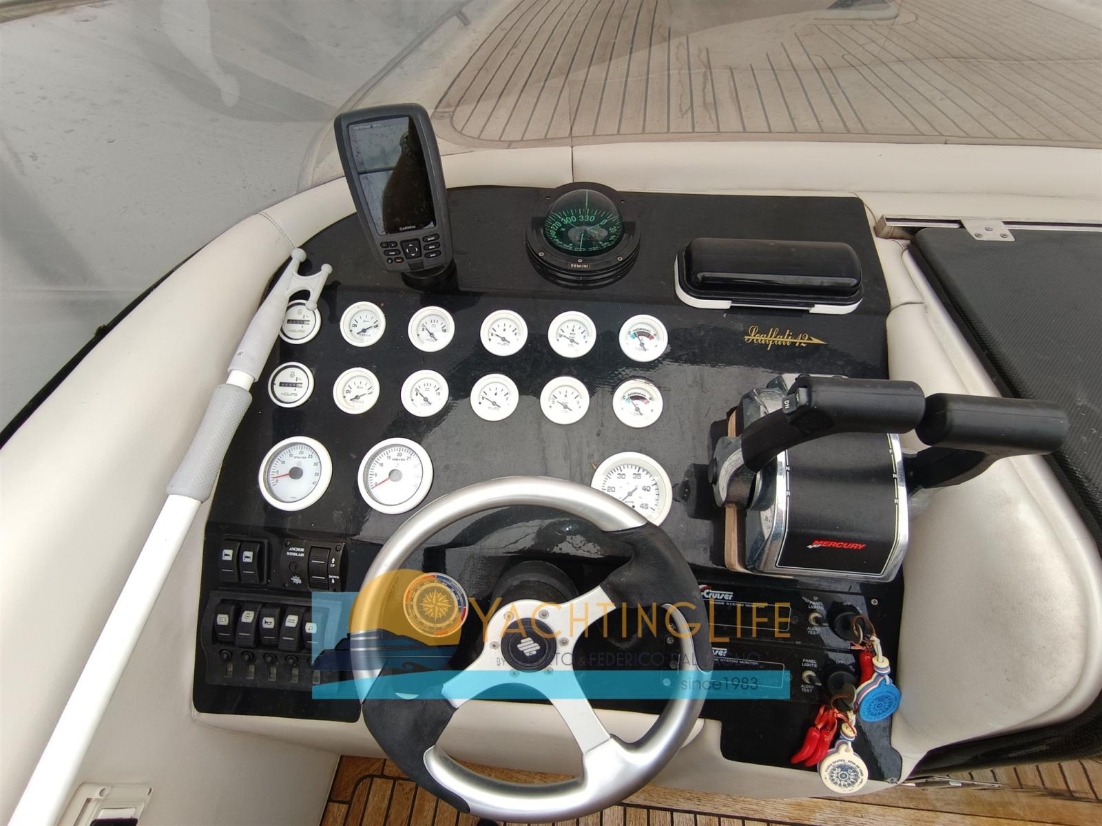 Alarme moteur, Ouverture du compartiment moteur électrique, Eau sous pression, Batteries (Da sostituire), Douche de cockpit, Flaps électriques, Crochet de remorquage pour ski nautique, Éclairage de courtoisie, Plateforme arrière (Inox autoportante), Pompe de cale automatique, Pont en teck, Porte latérale, Cockpit en teck, Prise de quai, Guindeau électrique, Echelle de bain, table de cockpit (Plexyglass), Corne.