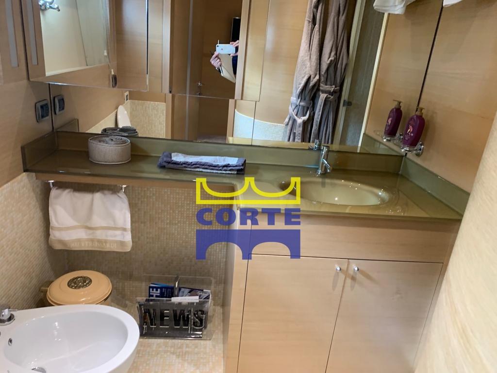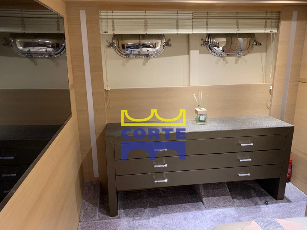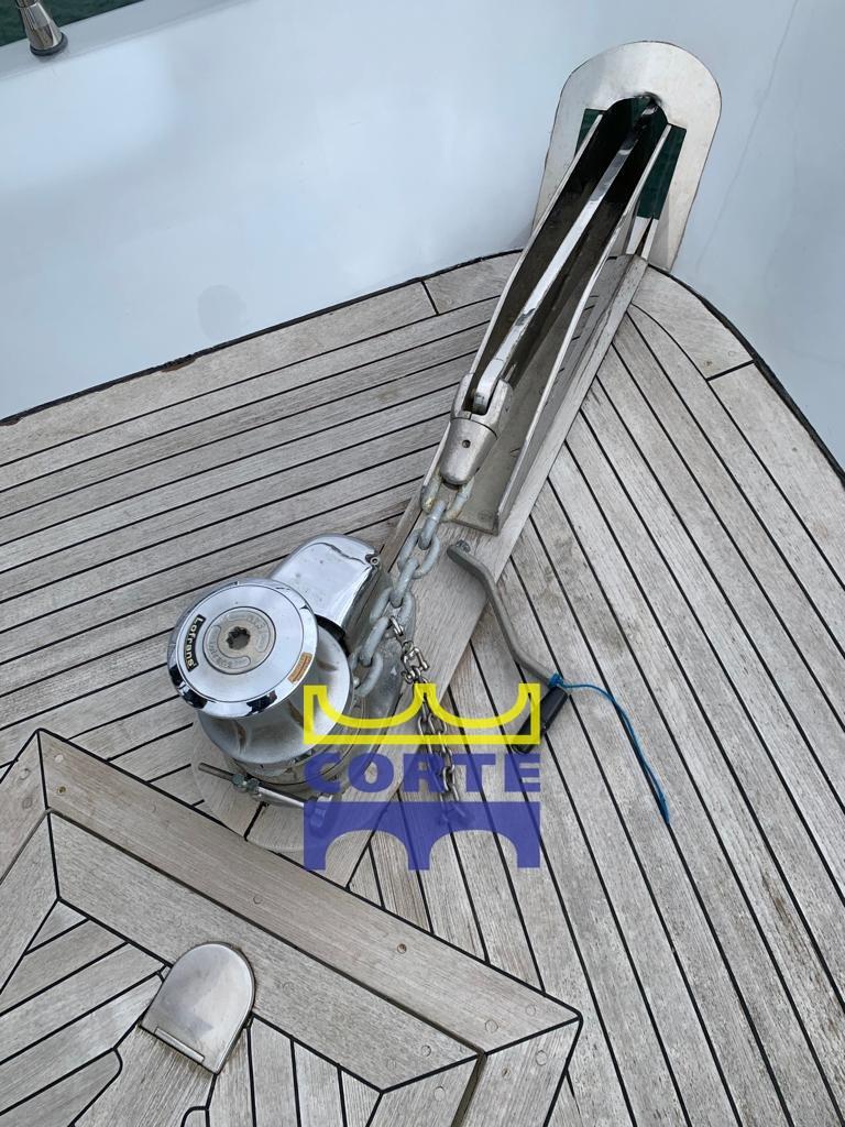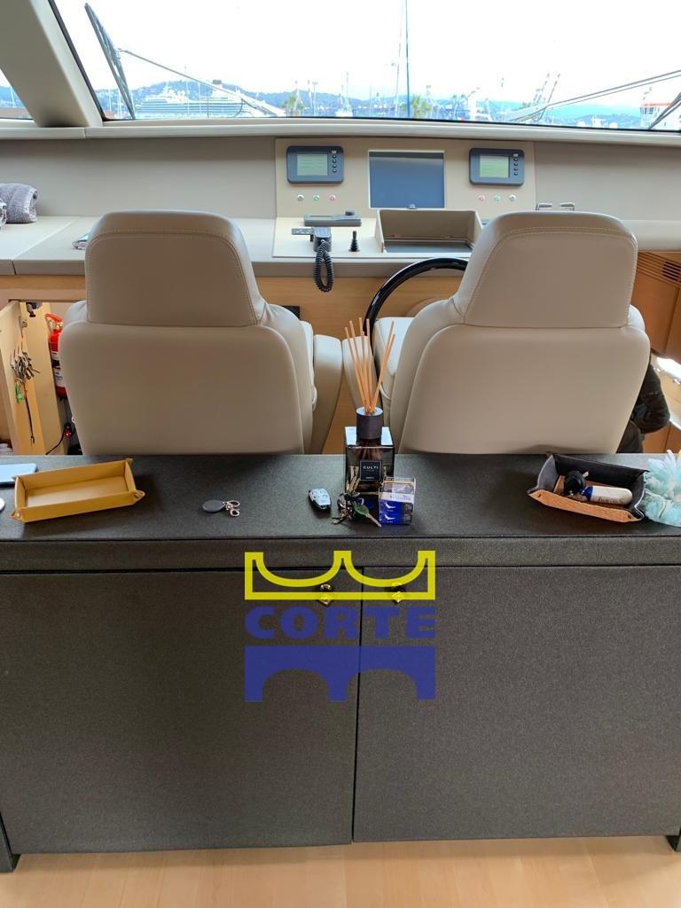 Alarme gaz, Alarme moteur, Alarme de pompe de cale, Eau sous pression, Taquets pliants, Passavant en teck, Douche de cockpit, Phare de poursuite, Flaps hydrauliques, Garage à annexe, Bossoirs pour annexe, Hard top, Extincteur(s) fixe(s), Lavage de chaine, Éclairage de courtoisie, Spots sous-marins (a due colori sia laterali che a poppa), Passerelle (a scomparsa), Plateforme arrière, Pompe de cale automatique, Porte latérale, 2 Porte latérale, Cockpit en teck, Prise de quai, Connexion eau sous pression à quai, Guindeau électrique, Echelle de bain, table de cockpit, Corne, Winch électrique arrière, Winch électrique avant.