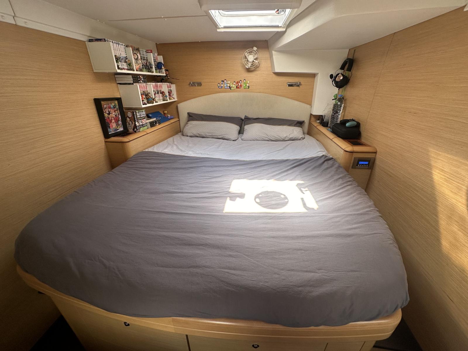Ce modèle dispose de 4 cabines doubles, dont une convertie en smart room technique, idéale pour optimiser le stockage ou accueillir les équipements spécifiques d’un programme hauturier. Les aménagements intérieurs sont spacieux, lumineux et parfaitement adaptés à la vie à bord longue durée.