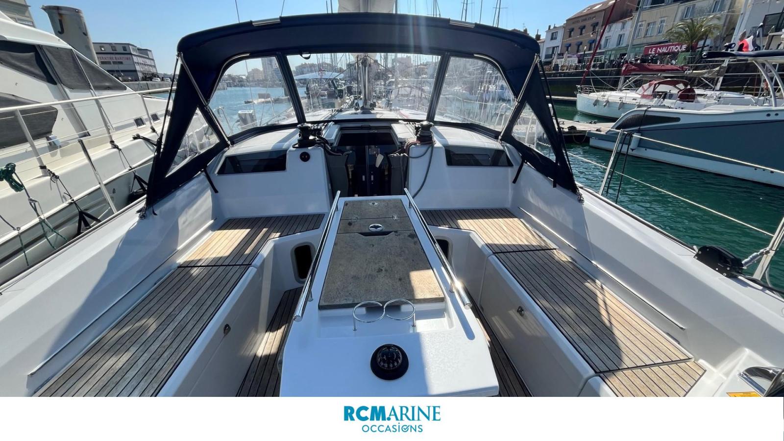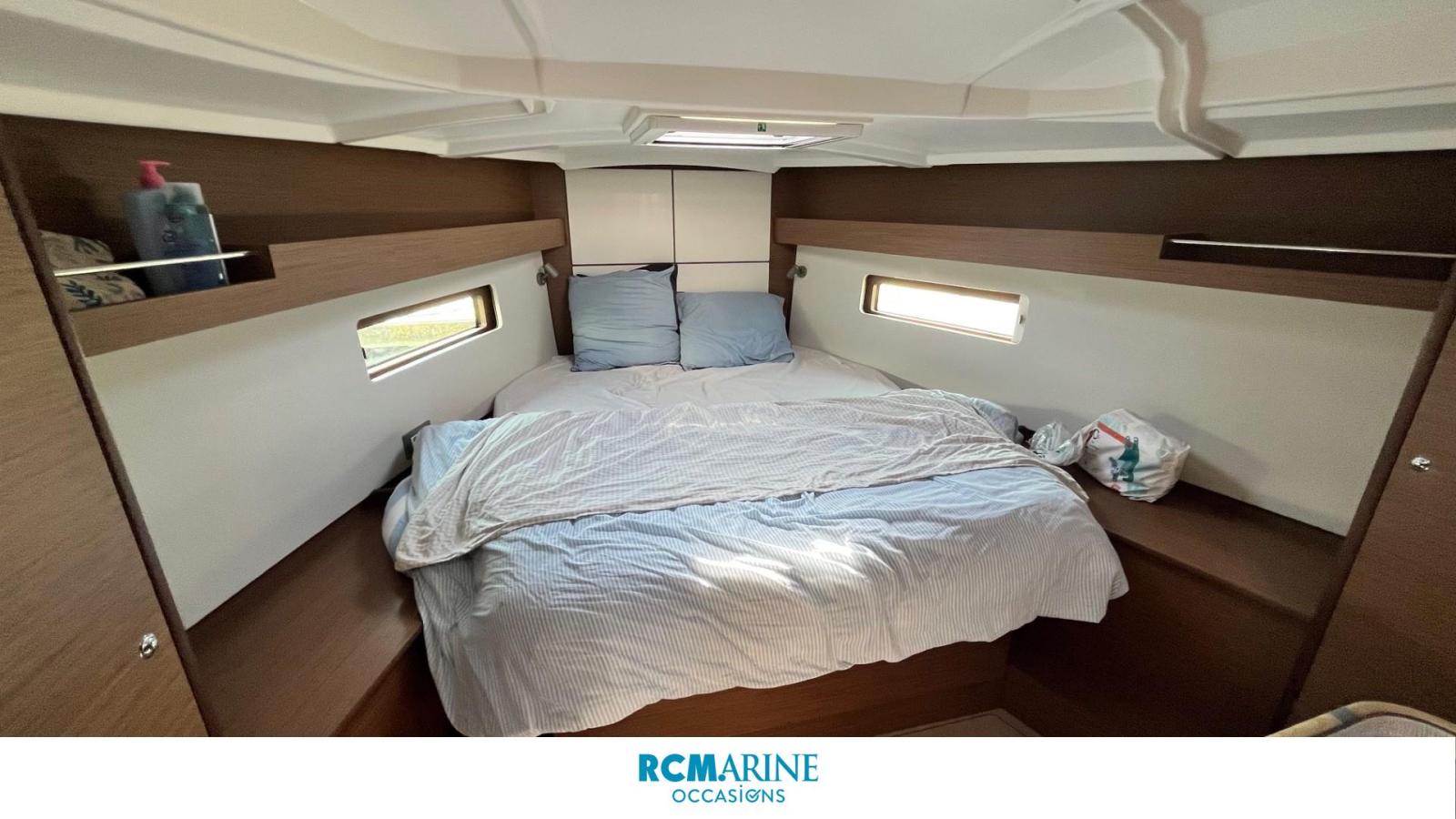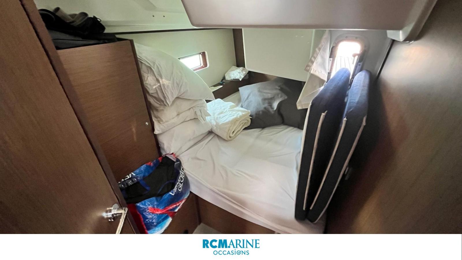 Version 3 cabines intérieur alpi noyer. une salle d'eau cuisine en U sur tribord. Version mat classique et génois. Cockpit teck, bimini et taud de fermeture arrière viennent compléter l'inventaire, pour plus de précisions, votre contact Adrien JUST 06 31 10 50 63