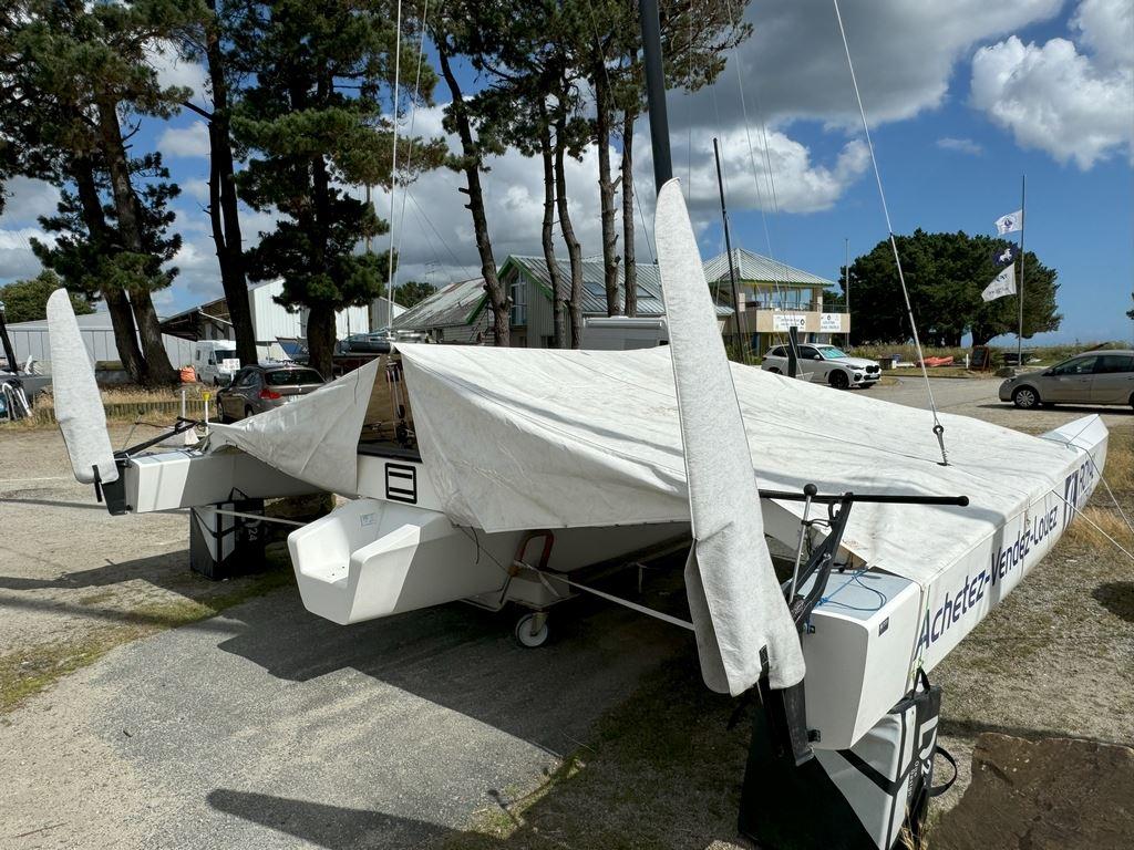 1 Coque Centrale avec sa mise à l’eau, sa dérive sabre et sa housse, ses trampolines 2 Flotteurs et ses 4 bers en mousse 1 Bras avant & 1 bras arrière 1 mat carbone, son gréement, ses drisses et la bôme, Système de barre : 2 safrans avec housse, 1 barre de liaison et 2 sticks 3 voiles : 2 Grand Voile 3DI & lattes carbone, 2 Foc 3DI, 2 genak en menbrane 1 Moteur Electrique Torqeedo, batterie, chargeur, 2 Dpoufs, kit sécurité, kit mouillage.