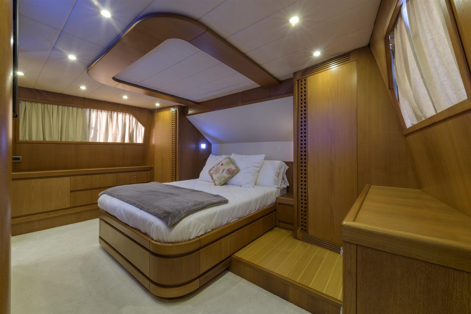 Navetta 24 de 2004 salon avec table à manger, cabine propriétaire sur le pont principal. Deux cabines doubles sur le pont, deux autres cabines avec deux lits au sol, chaque cabine avec sa propre salle de bain. cuisine. Fly avec table à manger. Cockpit avec canapé et table à manger. Stabilisateurs. VENTE EXCLUSIVE