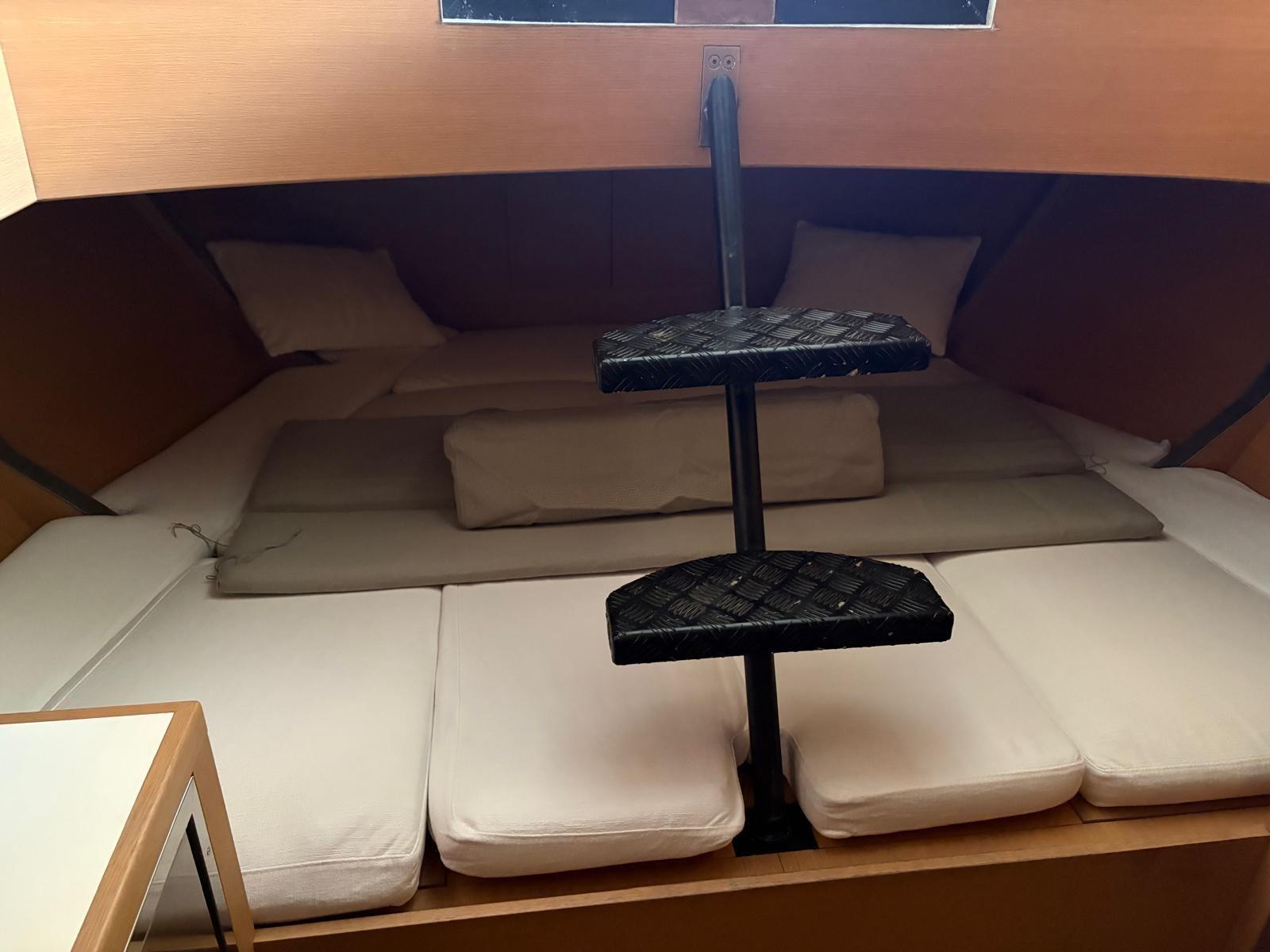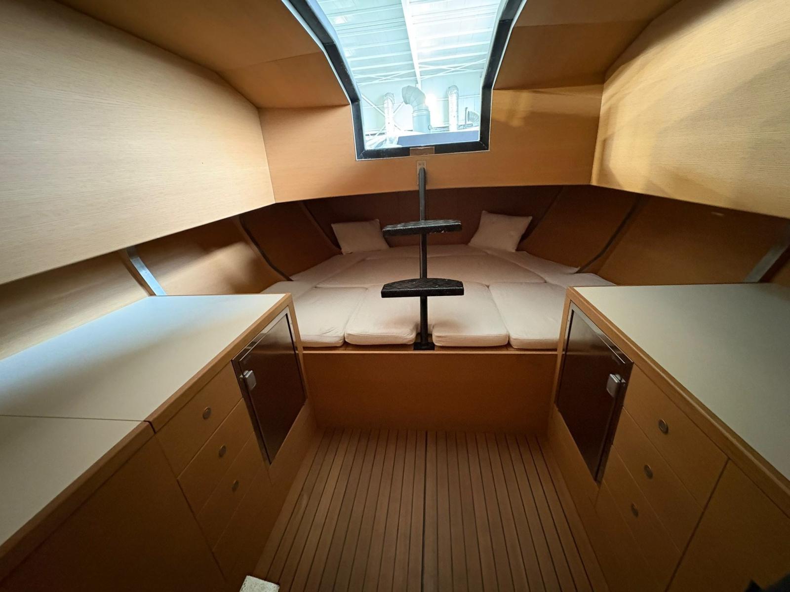 Situé à l’avant avec accès par une trappe, avec lit en V, N°2 réfrigérateurs VITIFRIGO installés dans le mobilier en bois et WC électrique. De la cabine, on accède au compartiment technique où se trouvent les réservoirs de diesel et le réservoir d’eaux noires. Système de direction à jet d’eau, manettes des gaz n° 2, contrôle du jet d’eau Hamilton Jet, contrôle des volets Humphree, pilote automatique Furuno Navpilot 711C/OB, traceur de cartes Furuno NavNet, imprimante multifonction Furuno FI-50, VHF Icom IC M411, jauges moteur Yanmar, compas magnétique Cassens & Plat. Pont entièrement en teck. Excellent bateau pour les excursions d’une journée, mais en même temps, il vous permet de rester même la nuit. Excellent design de haute qualité.