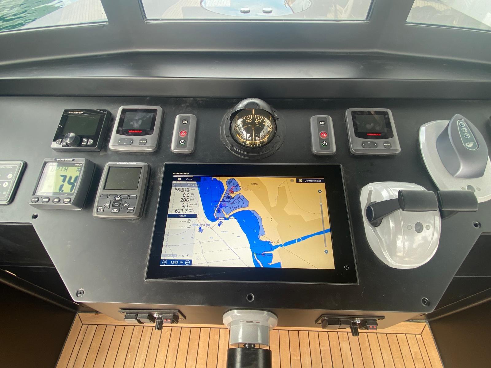 GPS (chartplotter Furuno NavNet, Multifunzione Furuno FI-50), Pilote automatique (Furuno Navpilot 711C/OB), Radio VHF (Icom IC M411).