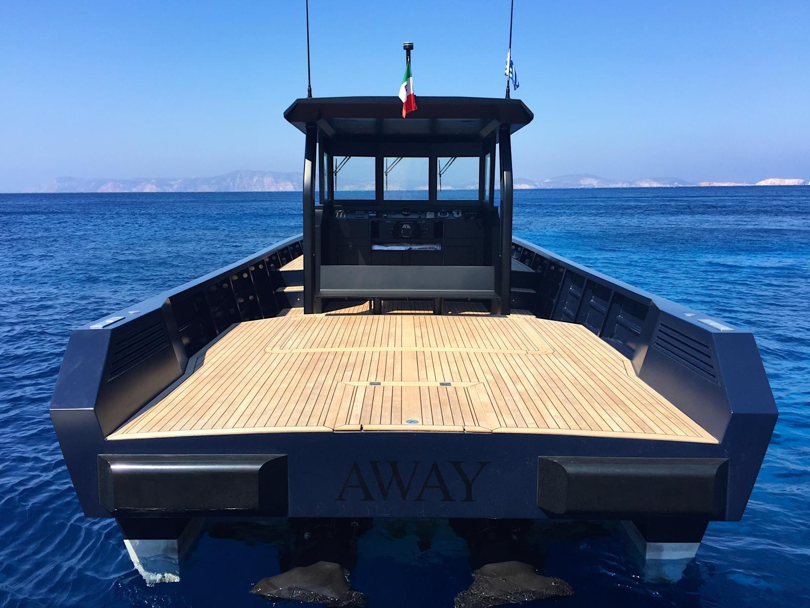 Un bateau en aluminium de 12 mètres avec propulsion par jet d’eau, construit à la demande d’un propriétaire italien.