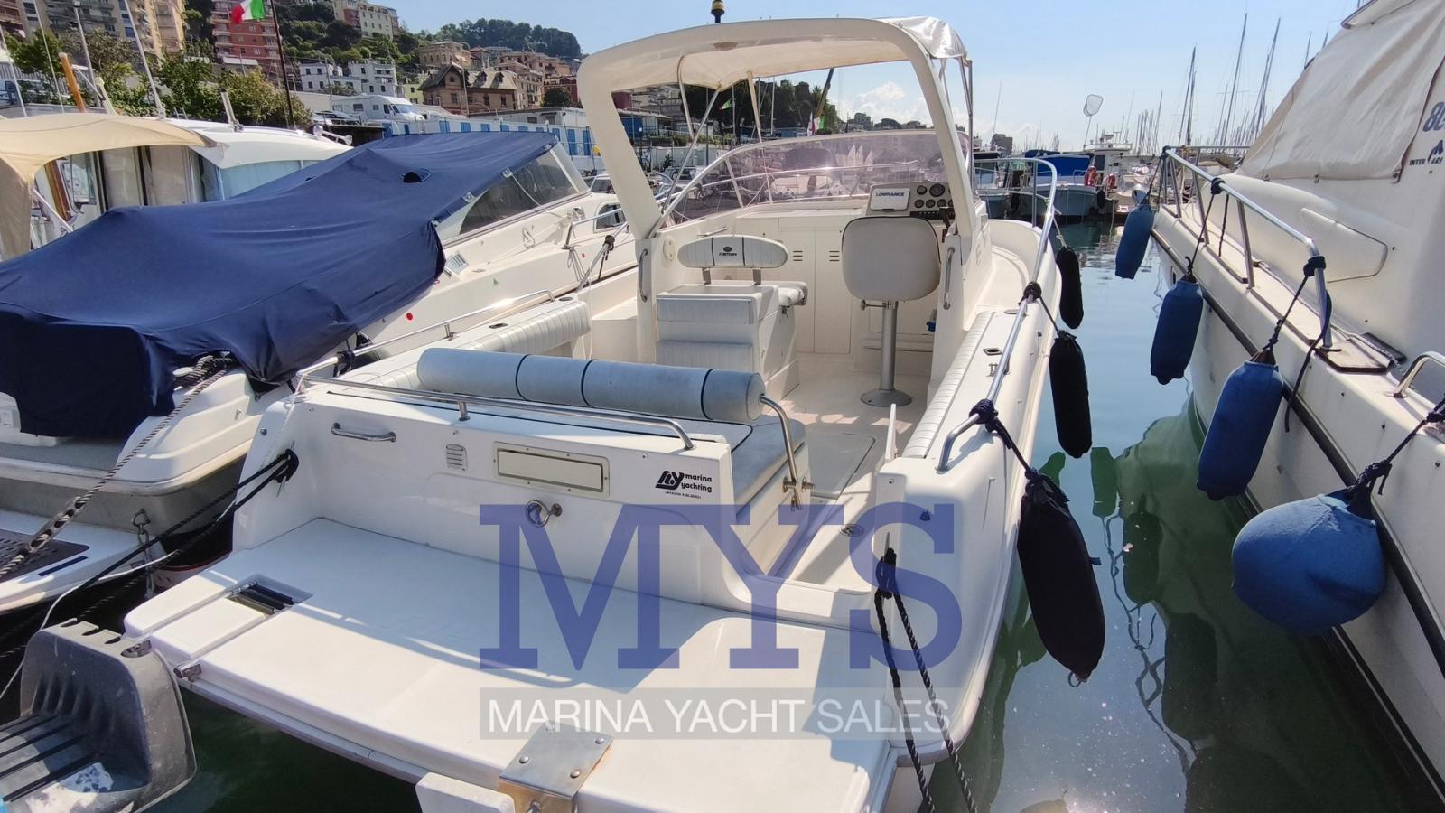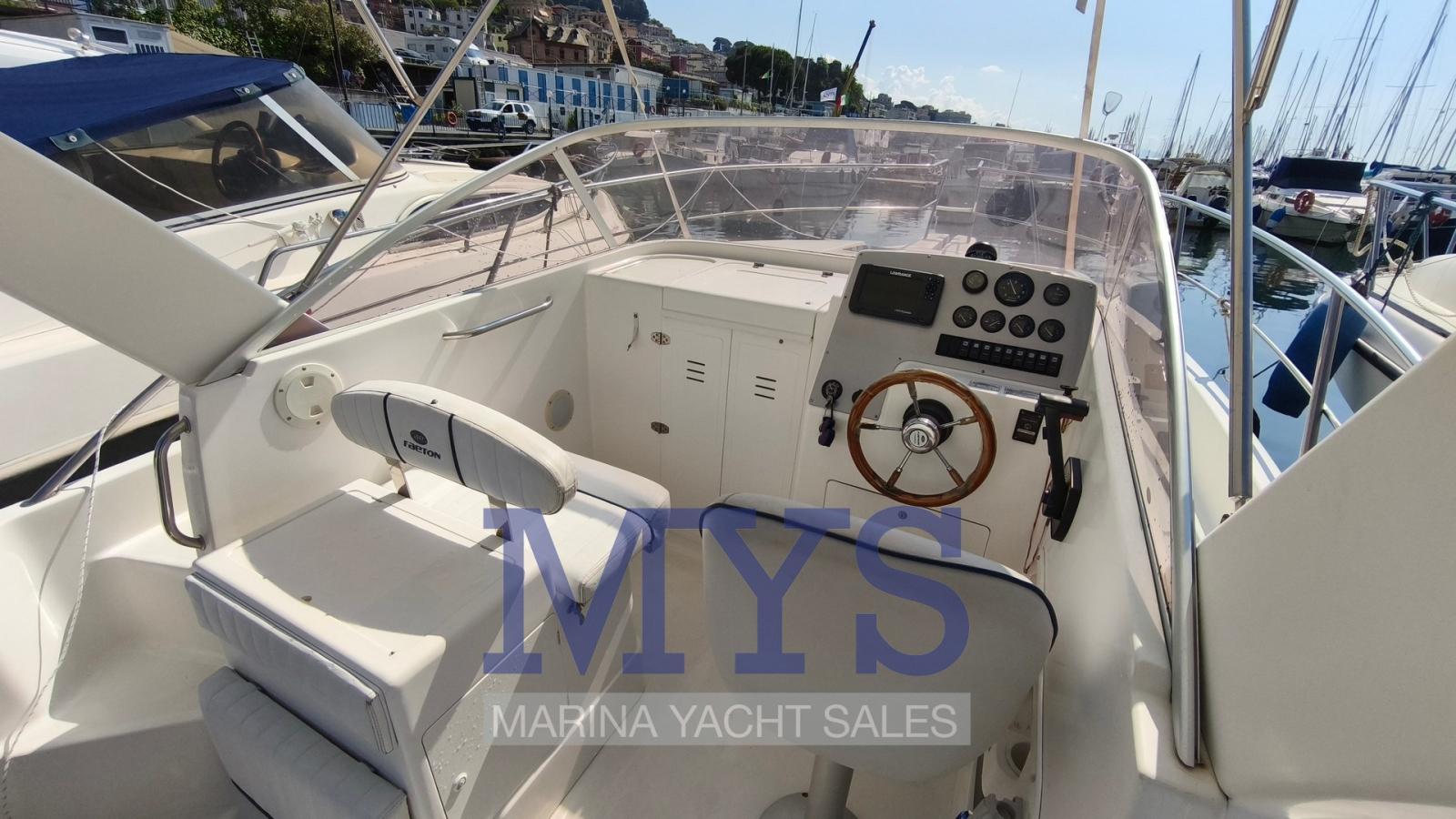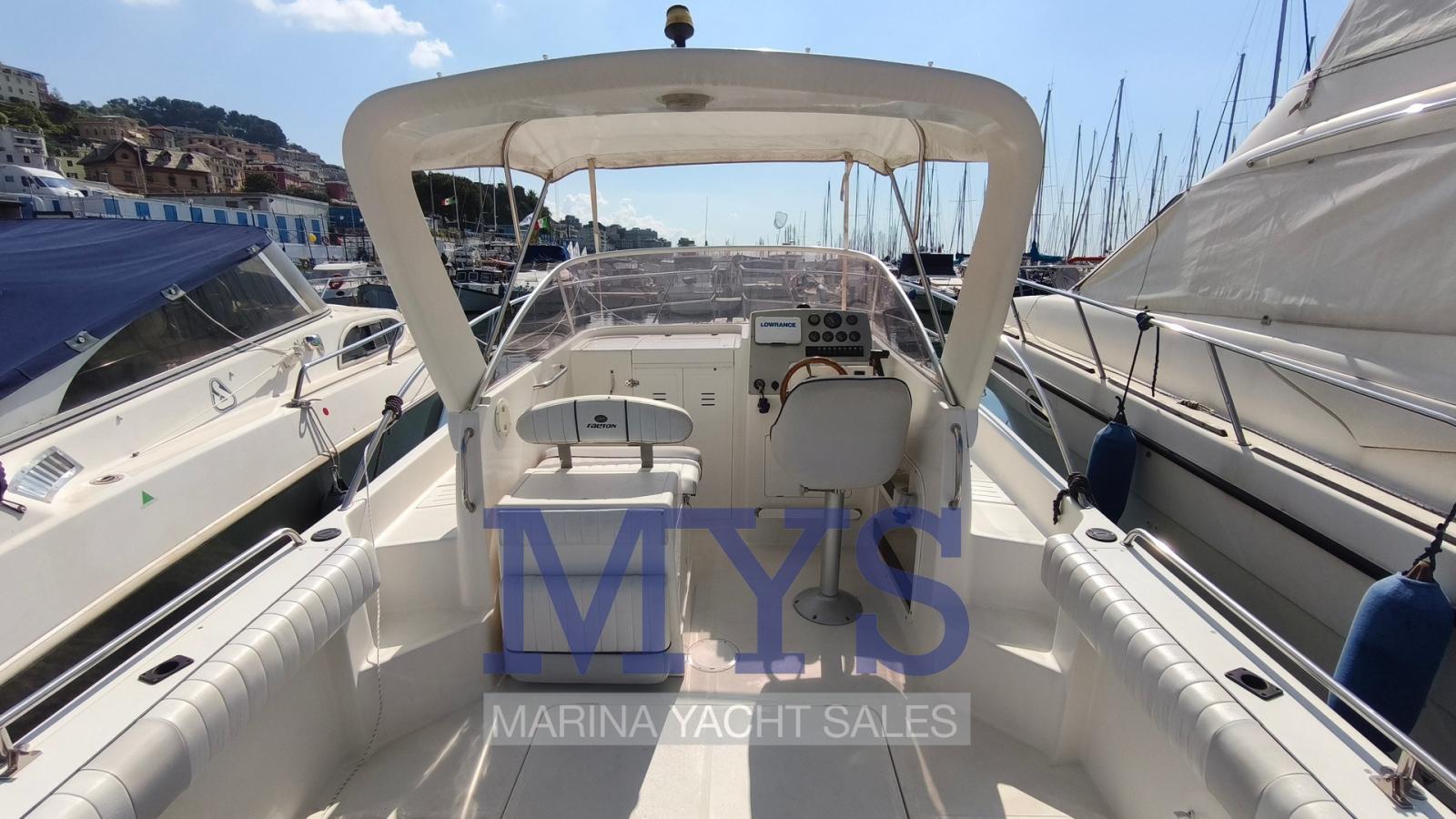 Alarme moteur, Ancre (kg 7,5 + 50 mt di catena), Eau sous pression, 2 Batteries (x 100 Ah), Douche de cockpit, Lavabo dans le cockpit, Éclairage de courtoisie, Pompe de cale automatique, Porte latérale, Prise de quai, Rollbar, Guindeau électrique, Echelle de bain, Chaise support HB, Corne.