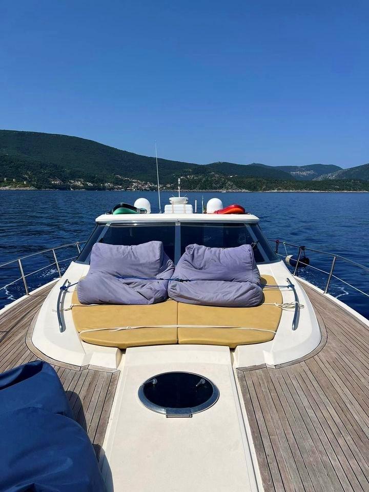 Eau sous pression, Passavant en teck, Couleur spéciale, Douche de cockpit, Flaps hydrauliques, Hard top, Éclairage de courtoisie, Passerelle (Idraulica a scomparsa), Pompe de cale automatique, Porte latérale, Cockpit en teck, Prise de quai, Guindeau électrique, table de cockpit, Annexe, Winch électrique arrière.