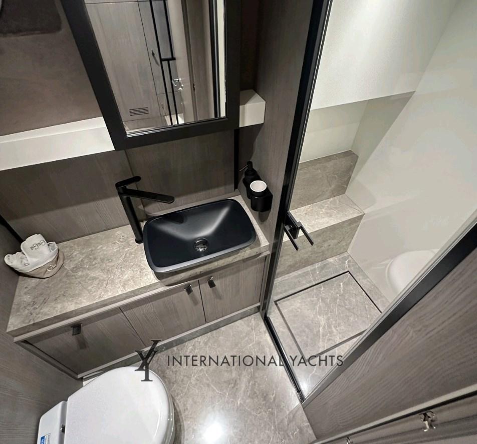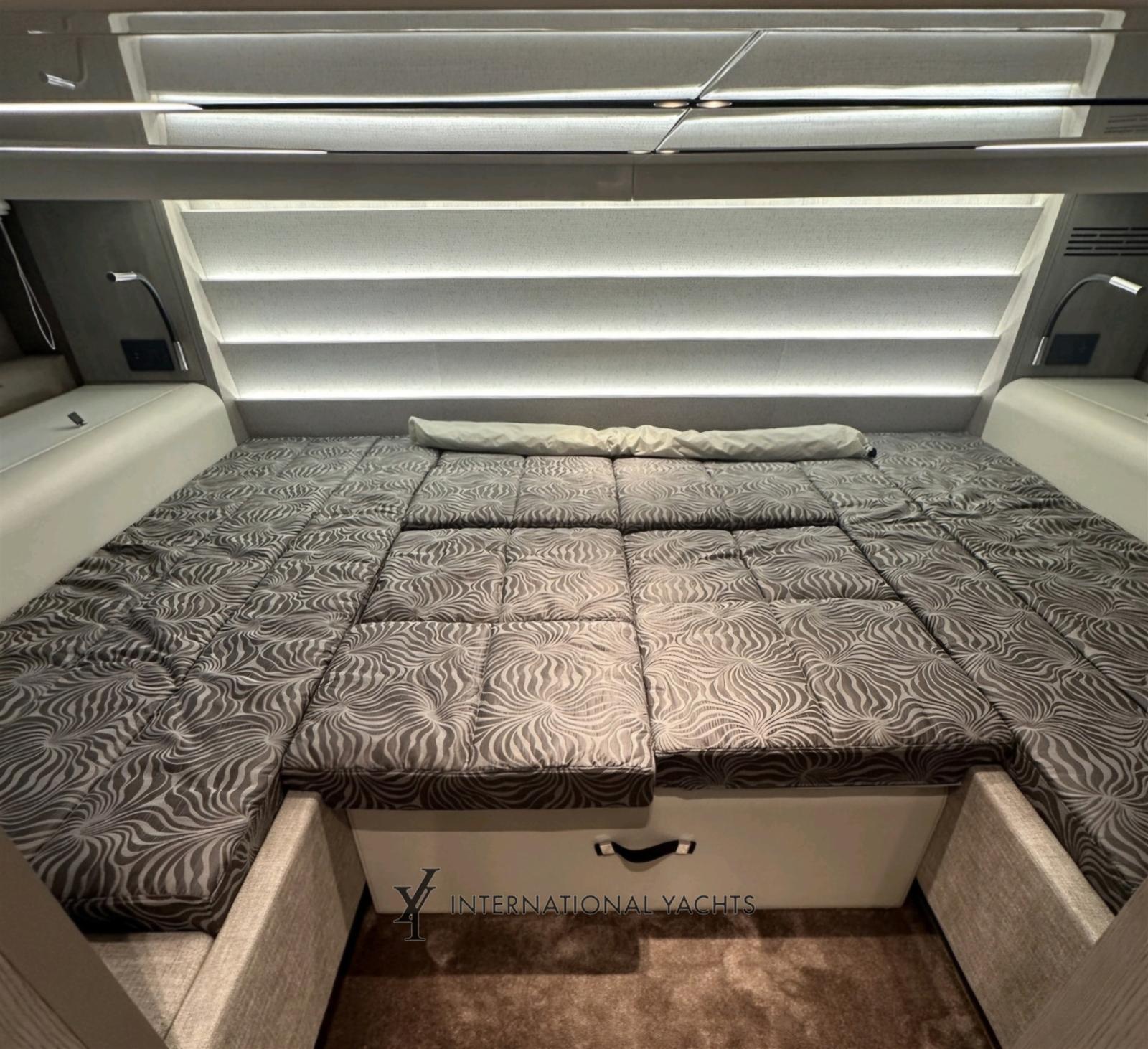 - Capote bimini à l’avant, micro-perforée noire avec poteaux en carbone.
