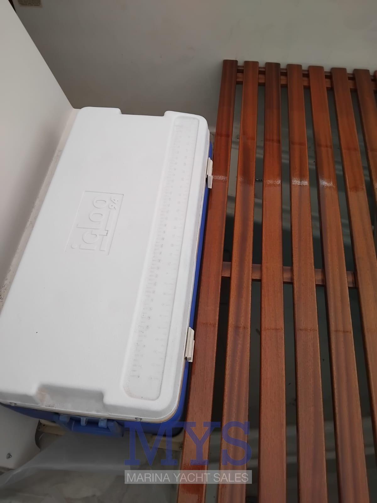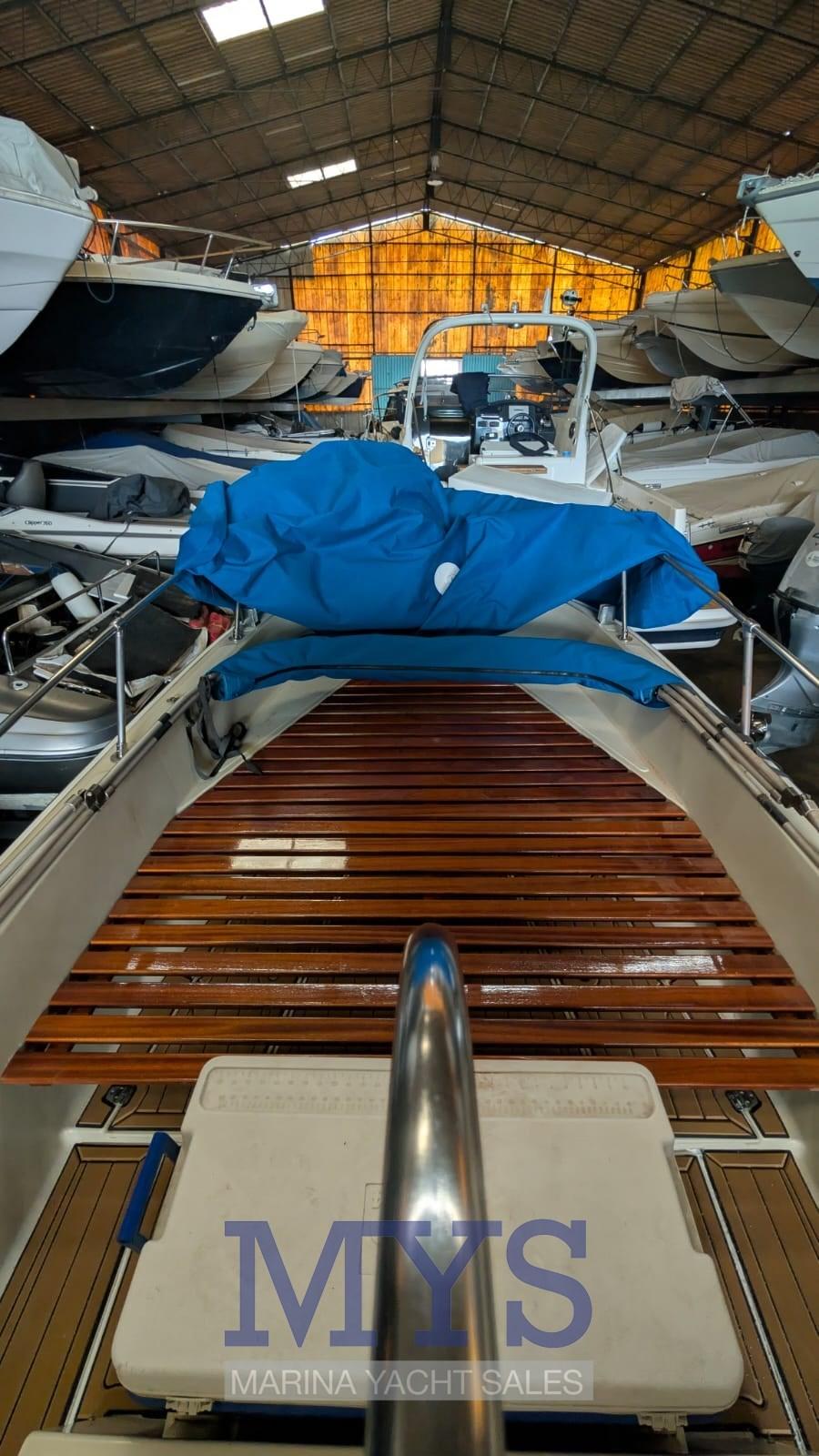 Alarme moteur, Alarme de pompe de cale, Eau sous pression, Douche de cockpit, Plateforme arrière (teak), Pompe de cale automatique, Pompe de cale manuelle, Cockpit en teck (sintetico), Prise de quai, Echelle de bain, Corne.