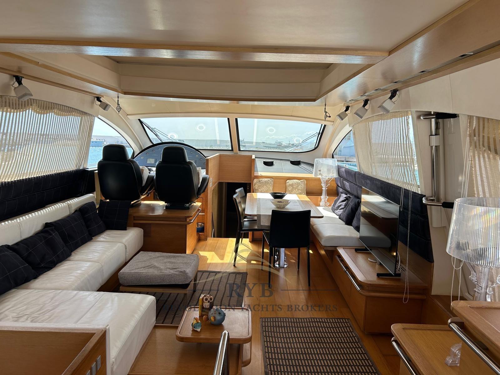 Alarme moteur, Eau sous pression, Passavant en teck, Douche de cockpit, Phare de poursuite, Flaps hydrauliques, Garage à annexe, Éclairage de courtoisie, Passerelle (IDRAULICA), Plateforme arrière (IDRAULICA), Pompe de cale automatique, Porte latérale, Cockpit en teck, Guindeau électrique, Echelle de bain, Winch électrique arrière.