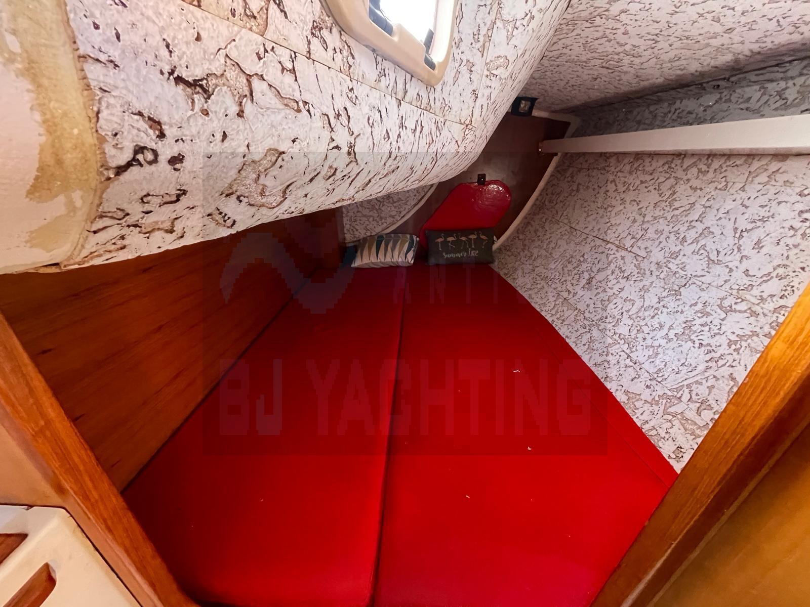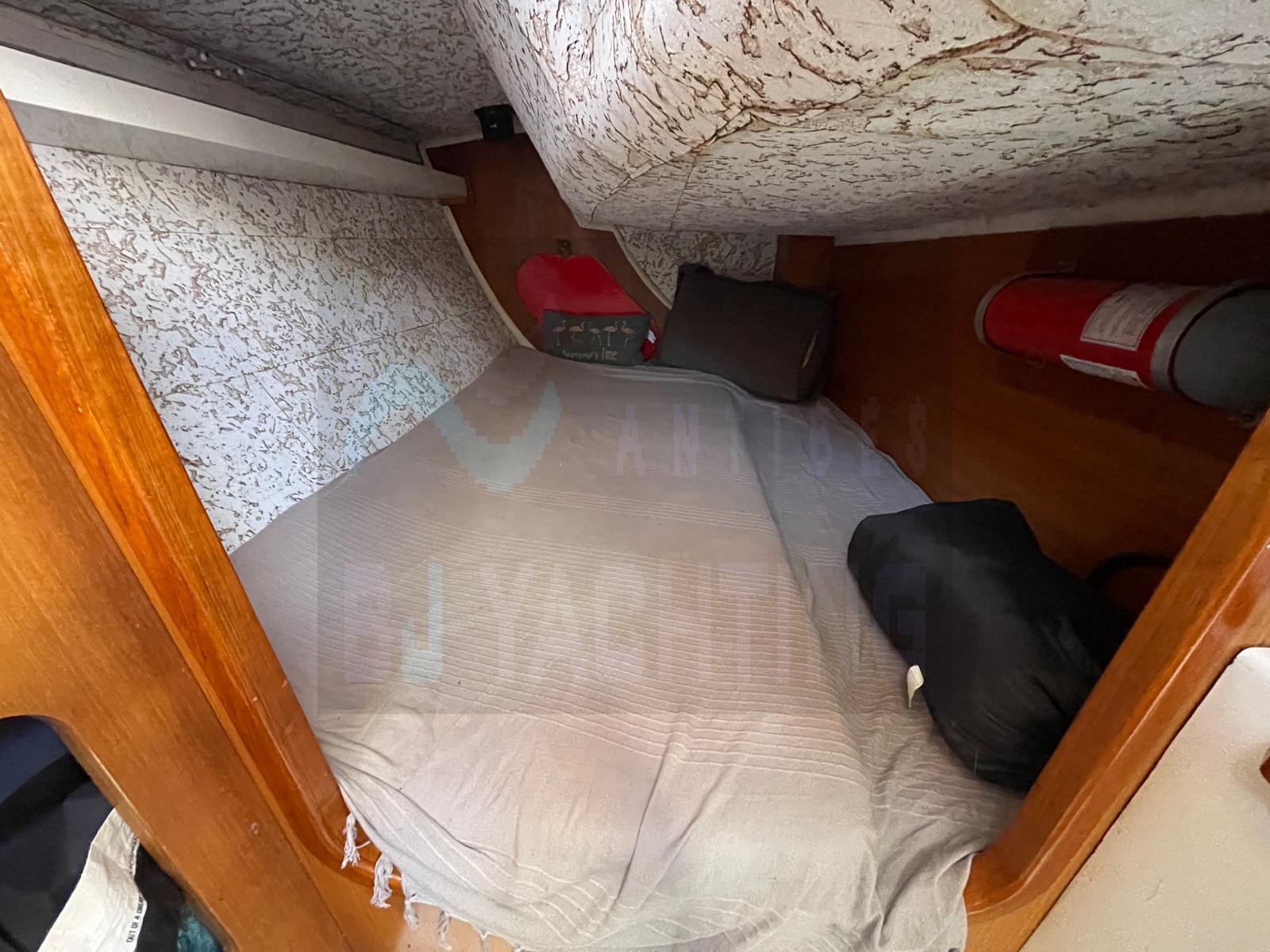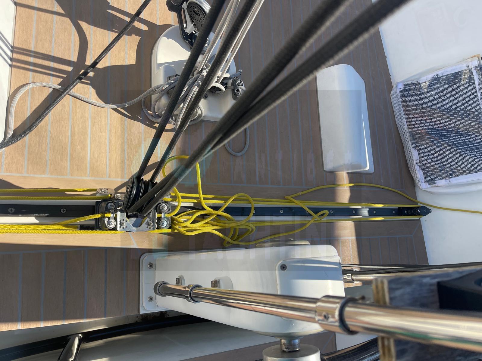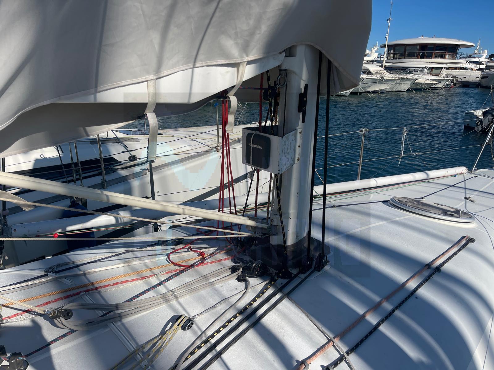 Équipé d’un mât et d’une bôme en carbone, ce voilier dispose de voiles neuves complétées par un jeu de voiles d'entraînement.