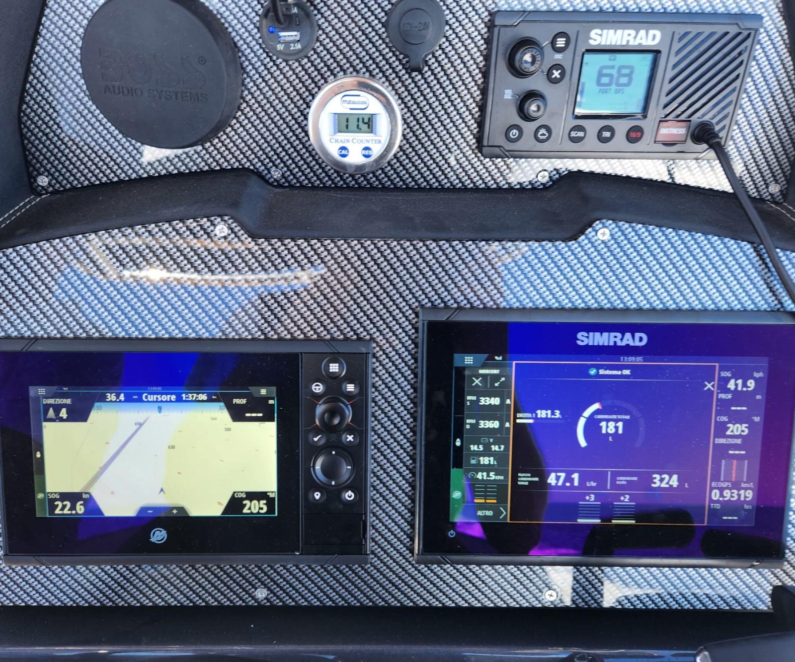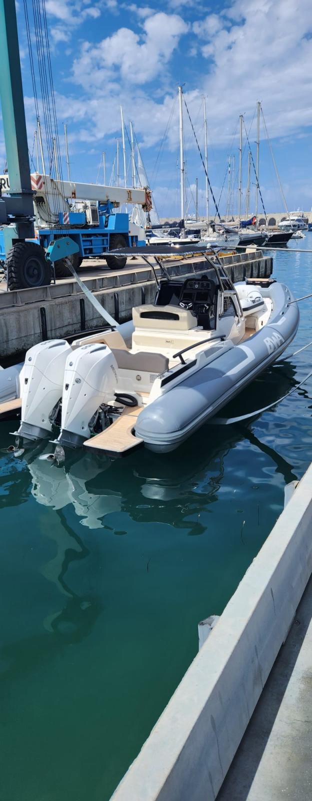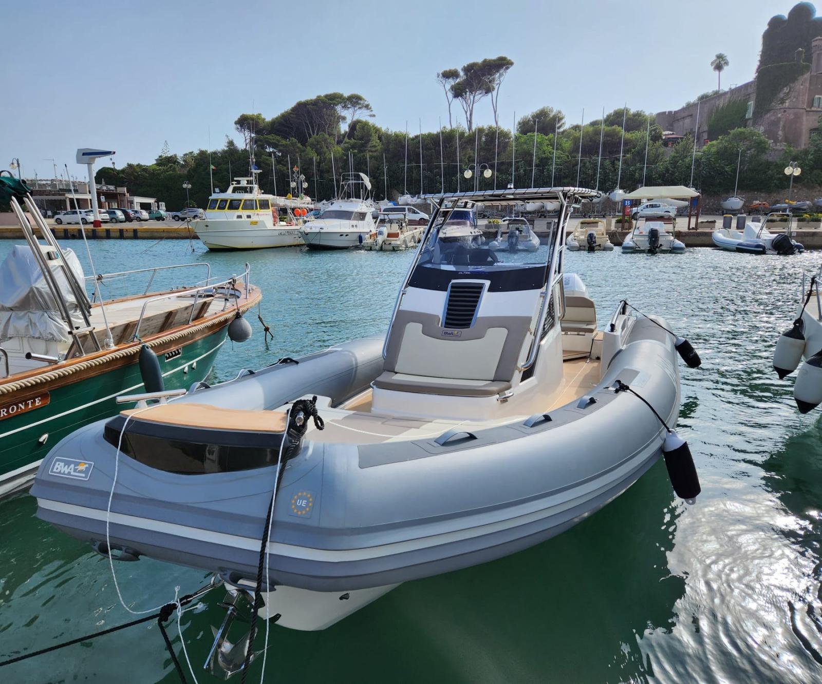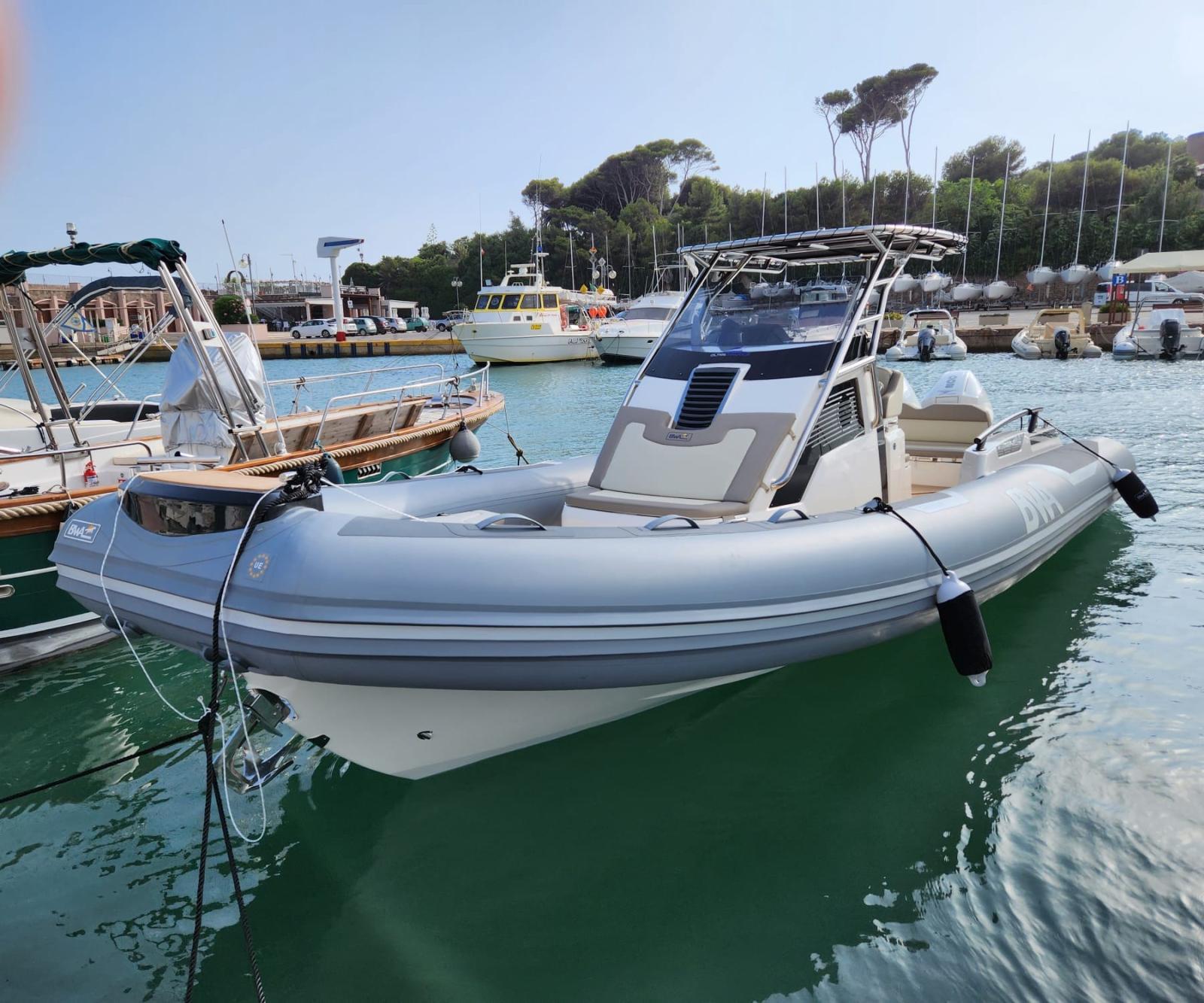 BWA 30 Premium N. 2 Mercury 200 hp white Équipement complet de la cabine avec salle de bain séparée, avec meubles, meubles et coussins Compas encastré avec éclairage Console complète avec tableau de bord pour les commandes et les instruments Coussins extérieurs complets à cellules fermées Réfrigérateur à tiroirs Coffres d’étrave Sundeck Système électrique complet Évier et douche extérieurs Éclairage intérieur et ventilation de cabine à LED Feux de navigation à LED Nez en PRV à l’avant Plates-formes arrière intégrées extra-longues Pont pont et passerelle en teck Pompes de cale automatiques Système à 3 batteries Extensions de pont solaire Guindeau électrique avec ancre et chaîne en acier inoxydable Réservoirs de carburant en acier inoxydable 540 lt Réservoir d’eau 72 lt complet avec autoclave Toilette nautique avec réservoir d’eaux noires et vanne à trois voies Chargeur de batterie avec système, prise de quai et panneau de commande Installation avec salle de bain séparée dans la cabine Gps/Eco de 11 pouces interfacée avec les moteurs Table arrière électrique avec support et pistons T-Top en acier inoxydable avec auvent arrière et poteaux en carbone Deuxième réfrigérateur. Système stéréo : lumières de terrasse à LED, ailes et câble de plate-forme