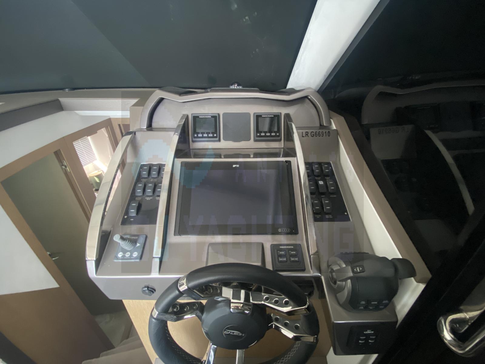 Toutes options : générateur, climatisation réversible, électronique complète (GPS, radar, sondeur, pilote automatique, AIS, répétiteur), cockpit teck, passerelle hydraulique, et bien plus encore.