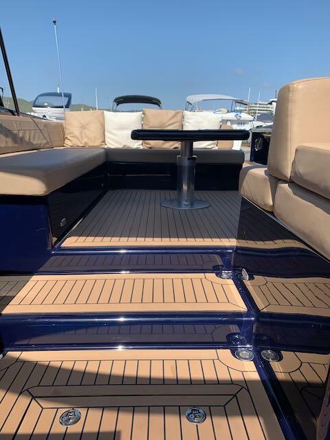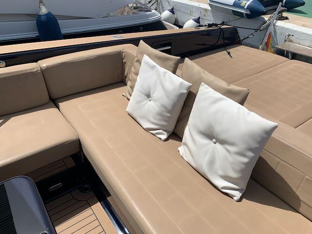Les finitions sont à la hauteur de sa réputation : matériaux nobles, sellerie Silvertex quick foam, cockpit spacieux avec bains de soleil, carré modulable avec table Corian convertible en couchage double, salle d’eau complète avec WC électrique et douche intégrée. Idéal pour naviguer dans un confort absolu, de jour comme de nuit.