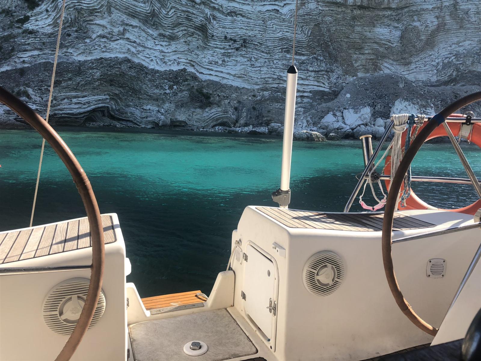 Alarme moteur, Eau sous pression, 2 Batteries (del 2022), Double barre à roue, Panneau solaire, Plateforme arrière, Cockpit en teck, Prise de quai, Guindeau électrique, Gréement monotoron, Echelle de bain, table de cockpit, Annexe (di 2,10mt con motore 5cv), 4 Winch.