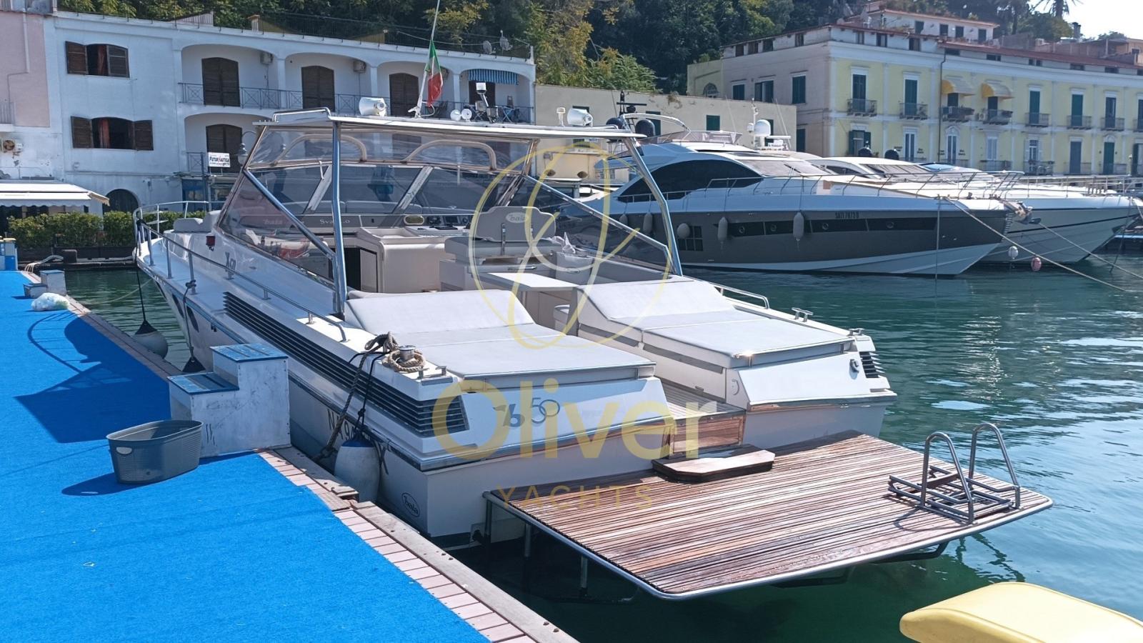 Cet exemplaire particulier, construit en 1990, a bénéficié d’un refit total en 2019, qui a complètement renouvelé son style et ses équipements. Parmi les principaux changements, on peut citer l’installation d’un toit rigide, l’ajout de verre pour plus de luminosité et de visibilité, et une nouvelle structure en acier AISI 316. Le passage à la proue a été facilité grâce à l’ouverture centrale, tandis que l’habitabilité sur le quai est améliorée grâce à une passerelle rétractable PIN Craft parfaitement intégrée. À l’arrière, les portes électriques, les doubles coussins, le grand bain de soleil et la sellerie en teck complètent un aménagement de croiseur sportif de prestige.