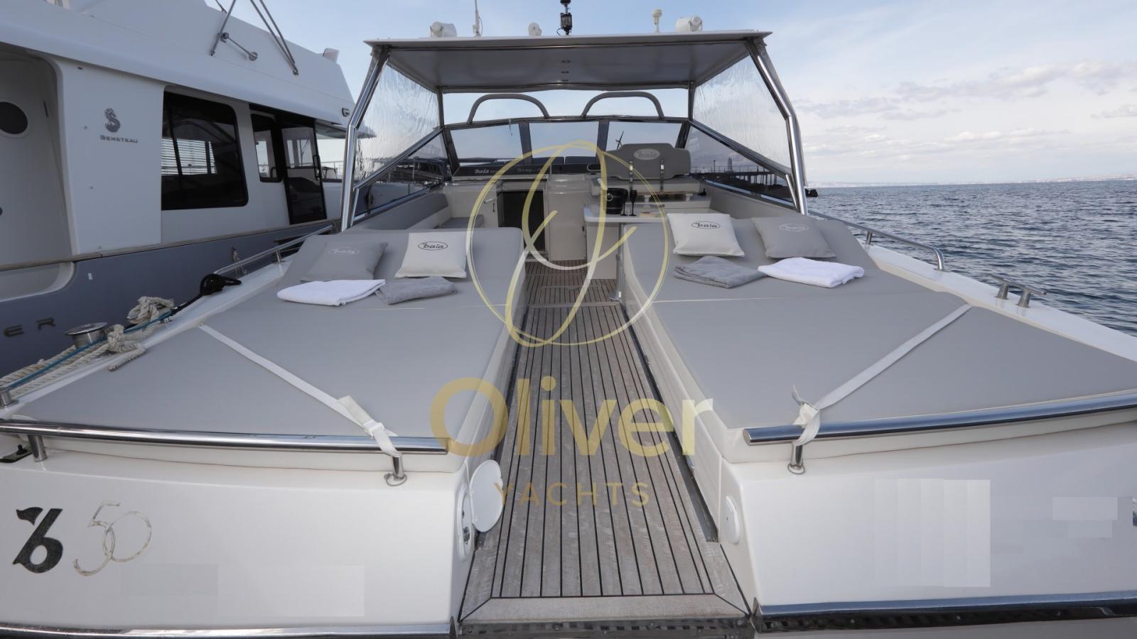L’intérieur du Baia 50 Force One a été redessiné en 2019 avec une refonte minutieuse des espaces pour assurer un maximum de confort à bord. Les chambres se distinguent par leur élégance, leur fonctionnalité et leur souci du détail, avec des finitions modernes et des matériaux de qualité, tout en conservant l’esprit sportif du bateau.