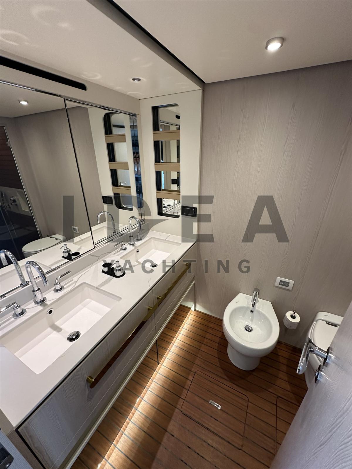 BBQ/ Grill (on the flybridge), Ballon d'eau chaude, Coffre-fort, Air Conditionné, Connexion à internet (Starlink), Gradateur de lumière, Dessalinisateur (HP 160 l/h), Cuve à eaux noires, Prises interieures 220v, Réservoir d'eau noire, Caméra vidéo (in the cockpit, engine room and flybridge), Toilettes électriques.