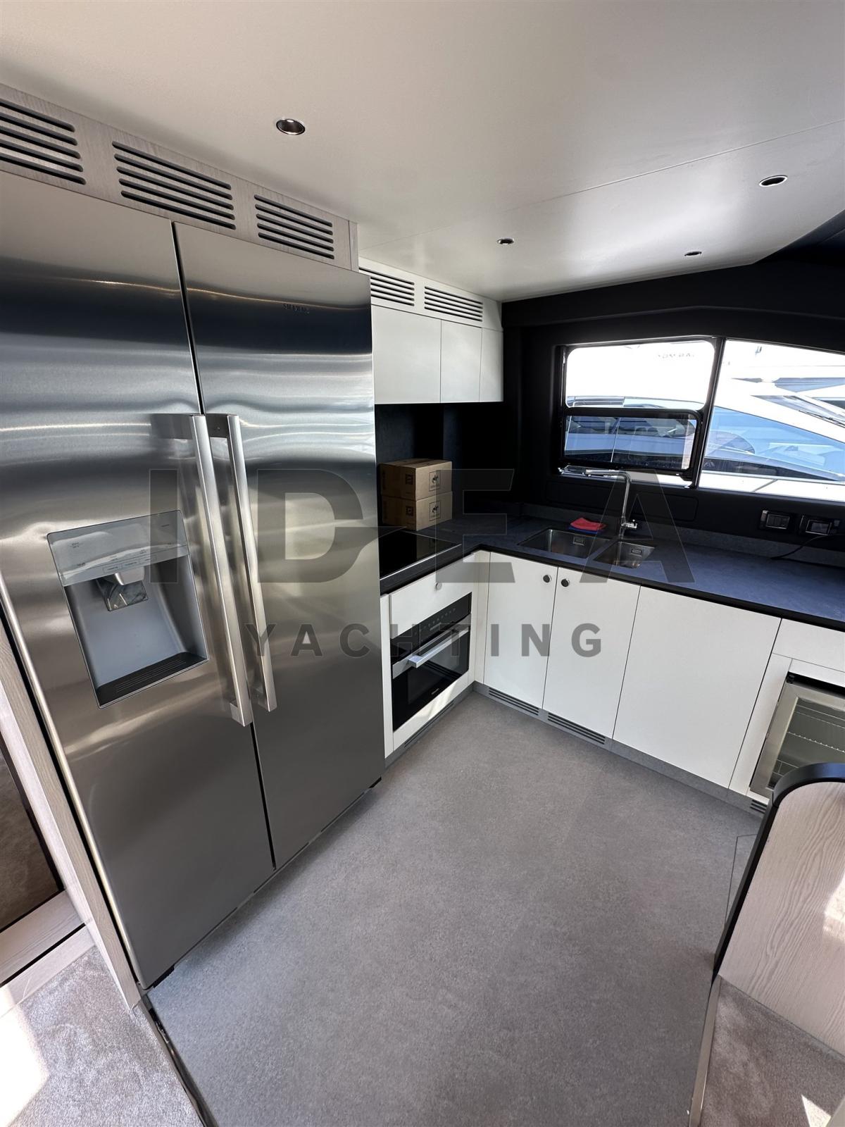 Sèche linge, Cuisine, Four (Miele), 2 Réfrigérateur extérieur, 2 Machine à glaçons (on the cockpit, on the flybridge), Lave-vaisselle (Miele), Lave-linge, Plaque vitrocéramique (Miele), Winecooler (in the galley).