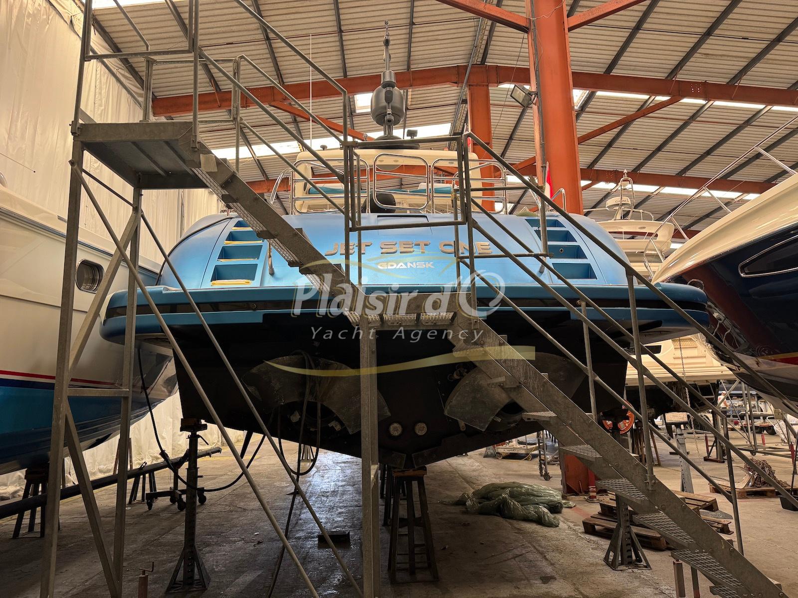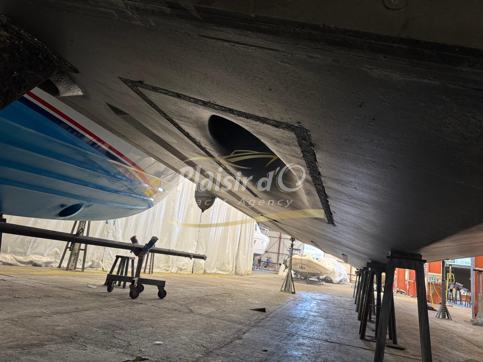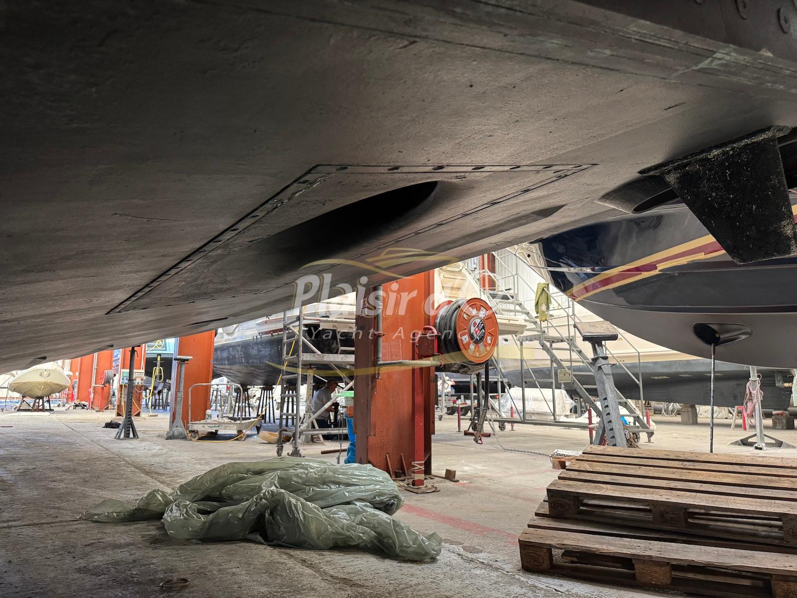 Bateau actuellement stocké sous hangar.