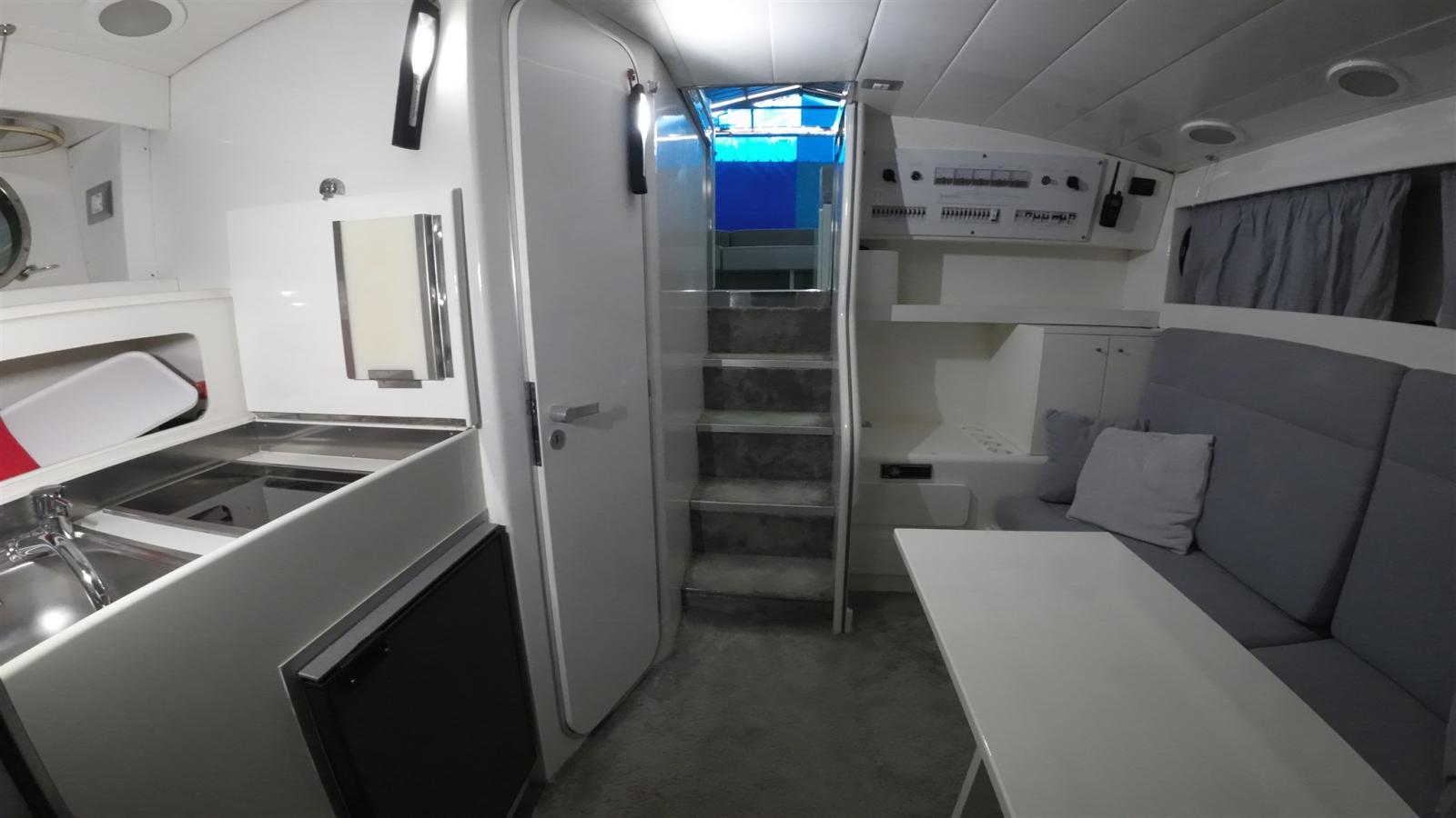 2 onduleurs, climatisation dans la cabine, deux brûleurs à induction, chargeur rapide, guindeau, chaîne et ancres surdimensionnées, HiFi neuve, pilote automatique, alarmes moteur et caméras de la salle des machines, passerelle révisée avec nouvelle unité de commande par câble et télécommandes, groupe électrogène, 4 batteries de service 2024, moquette intérieure fine grise, dinette convertible en double.