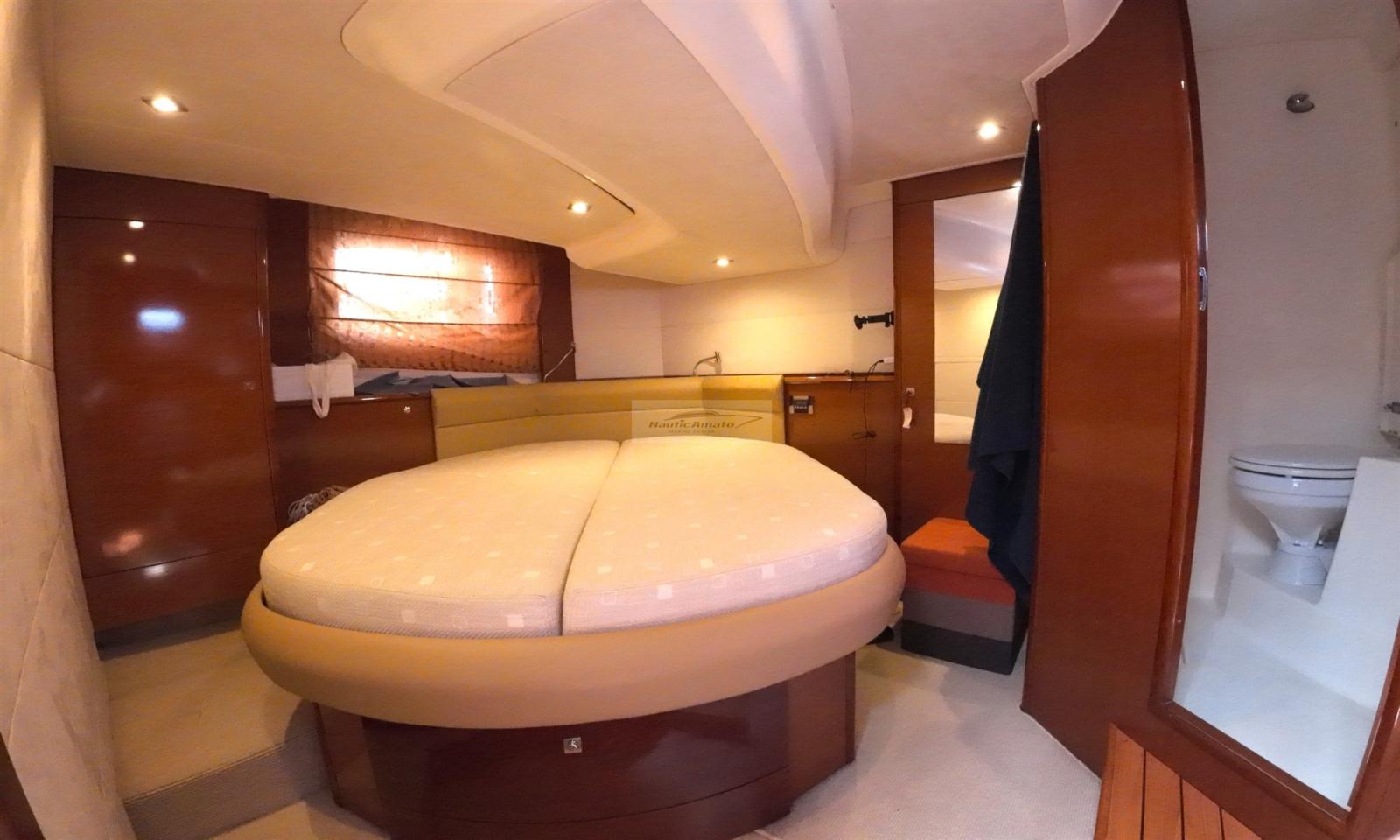 Alarme moteur, Eau sous pression, Douche de cockpit, Phare de poursuite, Flaps électriques, Garage à annexe, Hard top, Indicateurs de flaps, Lavabo dans le cockpit, Éclairage de courtoisie, Passerelle (a scoparsa), Pompe de cale automatique, Porte latérale (con vetro a scomparsa), Cockpit en teck, Prise de quai, Onduleur, Guindeau électrique, Echelle de bain, table de cockpit, Table pliante de salon, Annexe.