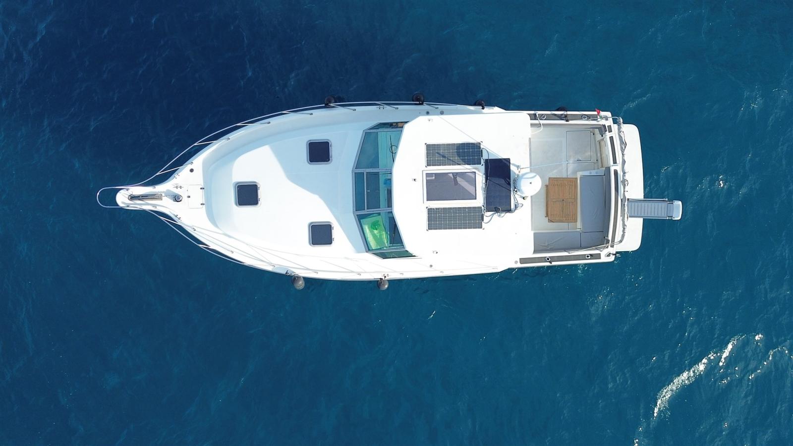 Eau sous pression, Douche de cockpit, Flaps hydrauliques, Hard top, Panneau solaire, Passerelle (IDRAULICA), Prise de quai, Guindeau électrique, Corne.