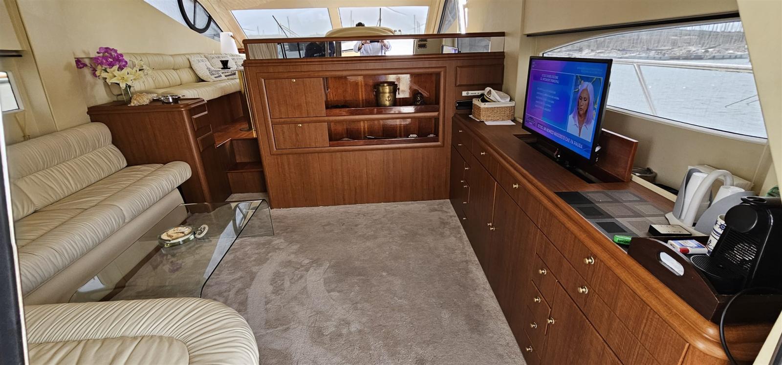 Ligne d'arbre de rechange, Eau sous pression, Passavant en teck, Douche de cockpit, Flaps hydrauliques, Extincteur(s) fixe(s), Éclairage de courtoisie, Spots sous-marins, Passerelle (IDRAULICA GIREVOLE), Pompe de cale automatique, Pompe de cale manuelle, Porte latérale, Porte latérale, Cockpit en teck, Prise de quai, Rollbar, Guindeau électrique, table de cockpit, Winch électrique arrière.