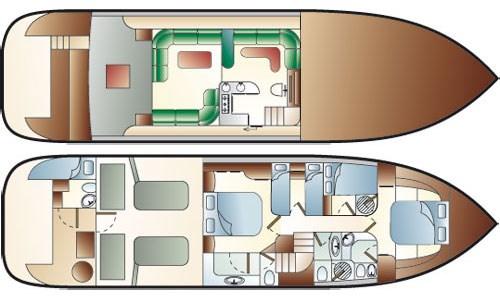 5 cabines 4 salles de bain + cabine équipage avec salle de bain