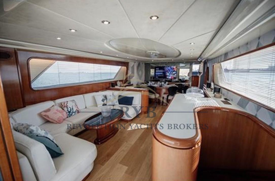 Alarme moteur, Alarme de pompe de cale, 2 Ancre, Eau sous pression, Passavant en teck, Douche de cockpit, Double barre à roue, Flaps hydrauliques, Grue de flybridge, Extincteur(s) fixe(s), Indicateurs de flaps, Lavage de chaine, Éclairage de courtoisie, Passerelle (idraulica), Plateforme arrière, Pompe de cale automatique, Porte latérale, Porte latérale, Cockpit en teck, Prise de quai, Connexion eau sous pression à quai, Rollbar, Guindeau électrique, Echelle de bain, table de cockpit, Corne, Winch électrique arrière.