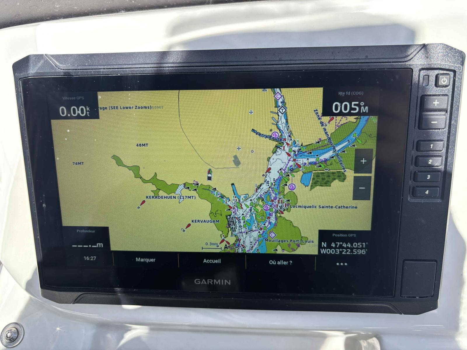 Douchette de cockpit, GPS Sondeur Garmin 92sv, direction hydraulique, bain de soleil arrière, sellerie complète. Armement de sécurité côtier pour 6 personnes et kit mouillage complet inclus.