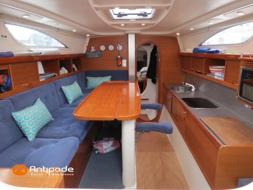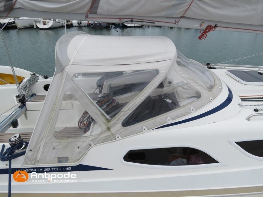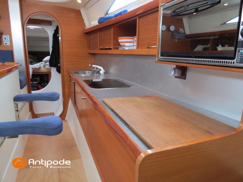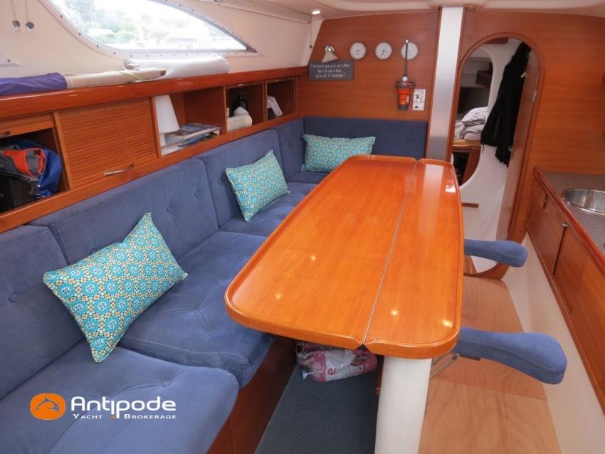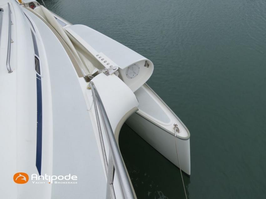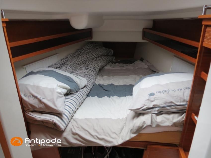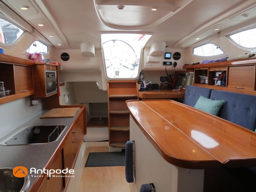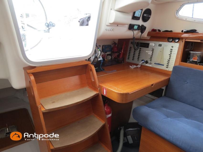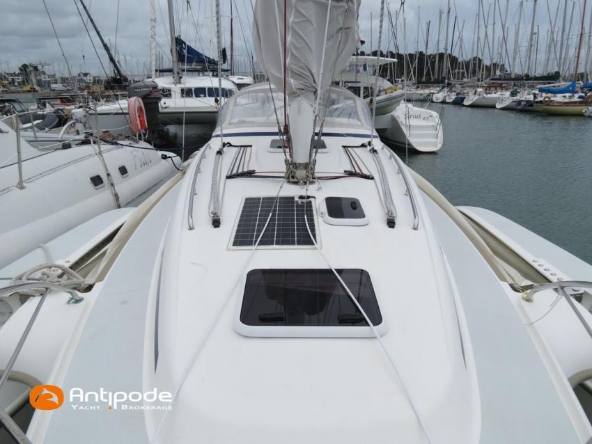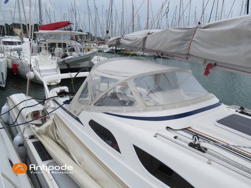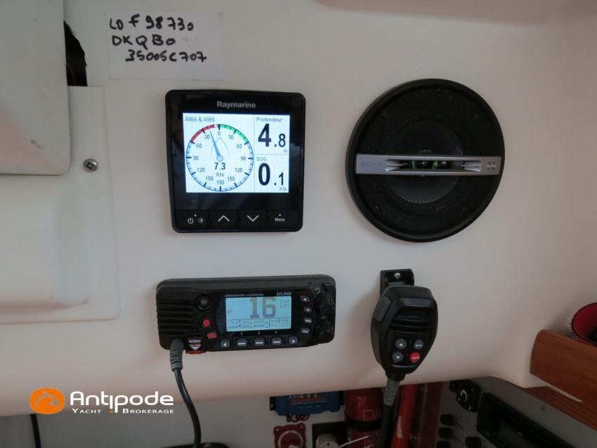 DRAGONFLY 35, 2007, VOLVO D1-30HP (remplacé 2021) 28 cv (275 h), Propulseur d'étrave rétractable, Cables waterstays - 2017, Trampolines remplacés 2025, Sangles de levages pour manutentions, 2 winchs électriques roof (electrifiés 2021) - Andersen 46, Barre à roue carbone - Jefa, Taud d'hivernage coque centrale, Guindeau électrique - Quick, Bome aluminium 2020, Gréement dormant câble monotoron - 2017, Grand-voile full batten à corne - Elvstrom Epex 2020, Rail de guindant de grand voile + chariots de lattes, Génois sur enrouleur - Elvstrom Epex 2020, Fourreau de protection pour génois enrouleur - 2020, Spinnaker asymétrique - 2007, Gennaker sur emmagasineur 52 m2 Stormlite - X VOILES 2020, Emmagasineur gennaker - facnor FX 2500 2020, Pilote automatique in board Raymarine - EVO P70 S 2023, Centrale de navigation 4 écrans - Raymarine I70 S 2023, GPS / lecteur de carte dans le cockpit - Raymarine AXIOM 7 2023, Cartographie électronique - Navionnics 2023, Transpondeur AIS (émetteur récepteur), VHF à la table à carte - Standard Horizon 2021, Multiplexeur VHF (commutation appel VHF sur HP cockpit), Interface Wifi - Raymarine, Balise de détresse (batt. exp. 2029) - Mc Murdo G8 2020, Prise de quai 220 V + chargeur de batteries - victron Bluesmart 30 amp 2023, Batteries service - 2 X 100 amp LITHIUM 2021, Convertisseur 12 V / 220 V - 2023, Chauffage EBERSPACER 3 sorties, Panneaux solaires - 50 W X 3, Eclairages intérieurs à Leds (carré) - 2021, Radeau de survie (prochaine révision 2026)- Seasafe 4 p. < 24 h 2023, Antifouling Copper Coat au cuivre 2025, Visible Bretagne. Pour plus d'informations ou pour fixer un rendez-vous de visite, contact : Jérôme Le Joubioux 06 07 45 71 73 - jerome@antipode-yachts.com