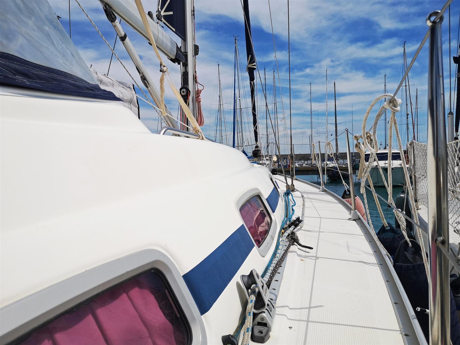 Prêt à naviguer grâce aux soins constants et aux mises à jour de son propriétaire, équipé d’une grand-voile 2022 pouvant être repliée au mât.