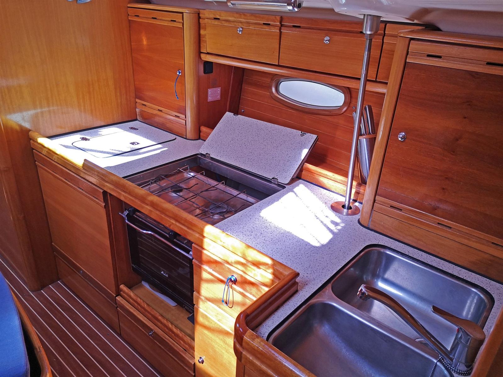 Cuisine Bulwark avec double évier, plaque à gaz à deux brûleurs, réfrigérateur cockpit et four