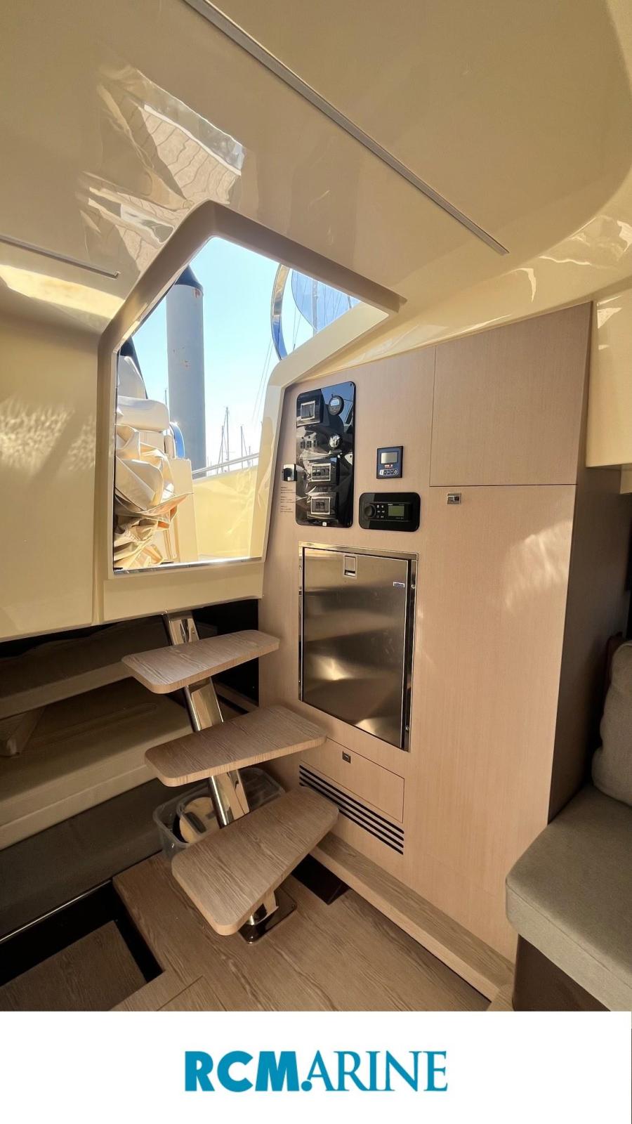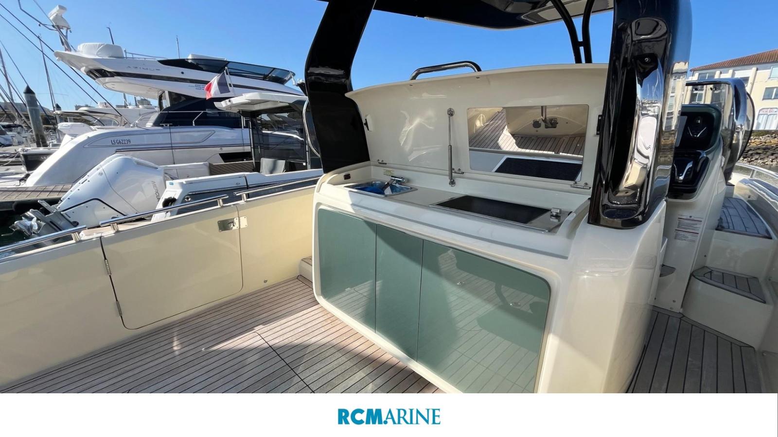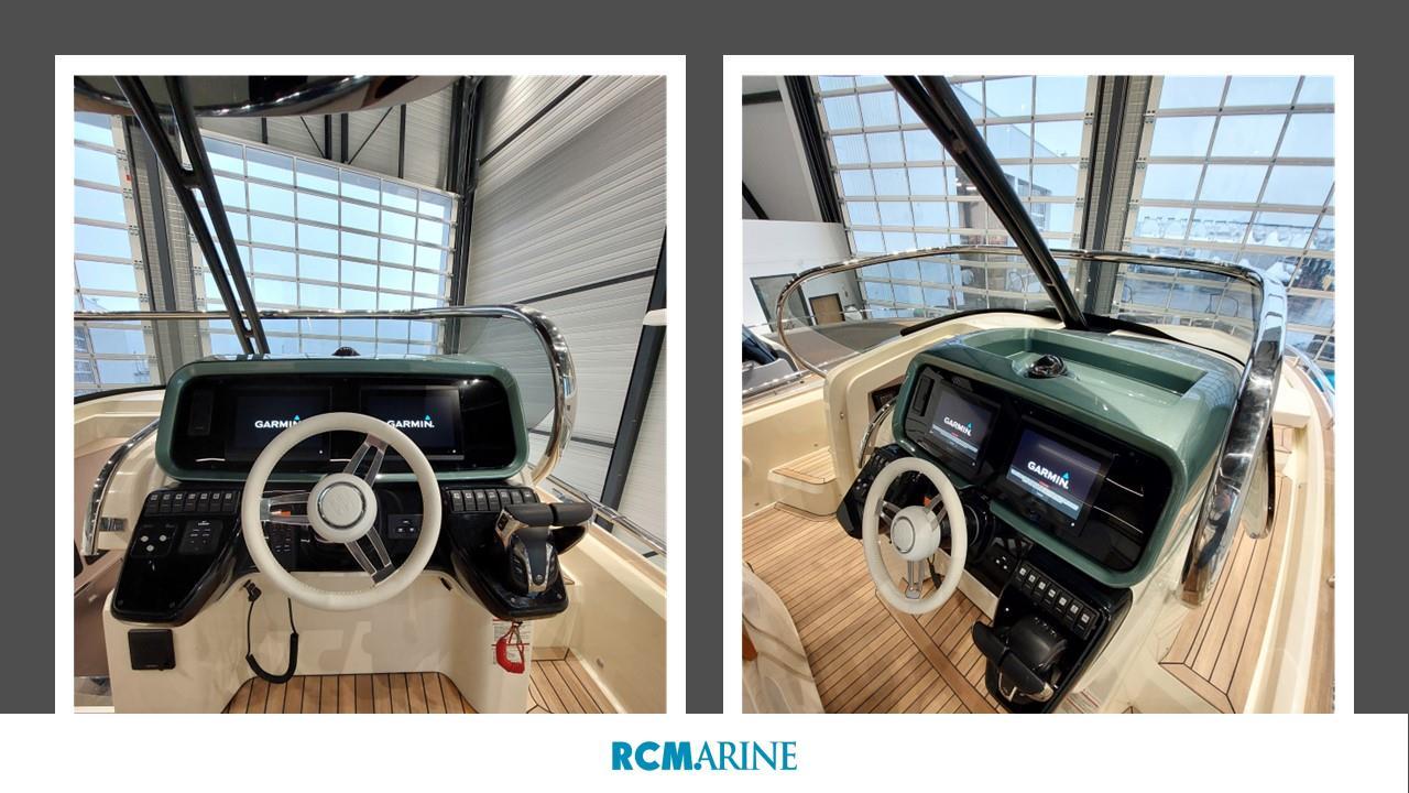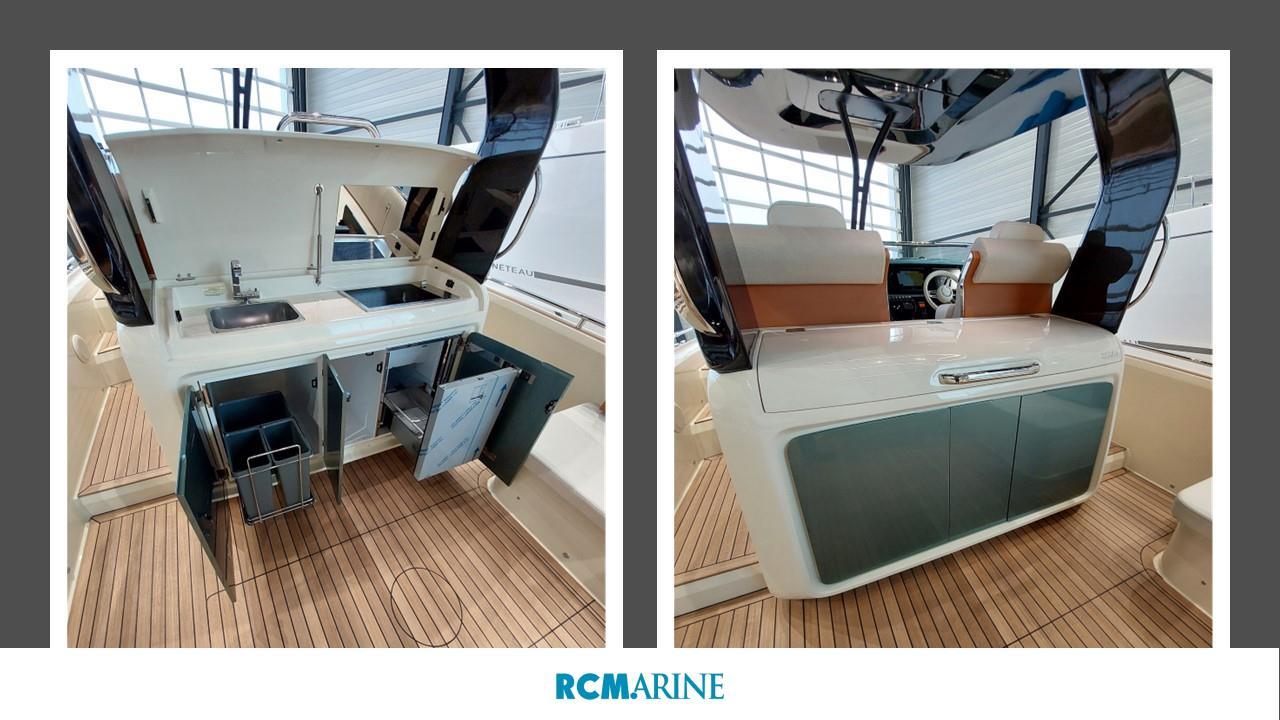 VHF Garmin 315, Refrigérateur cockpit, GPS MAP GARMIN 8410 XSV avec sondeur, Propulseur d'étrave, HI-FI Fusion, Bain de soleil, Table de cockpit