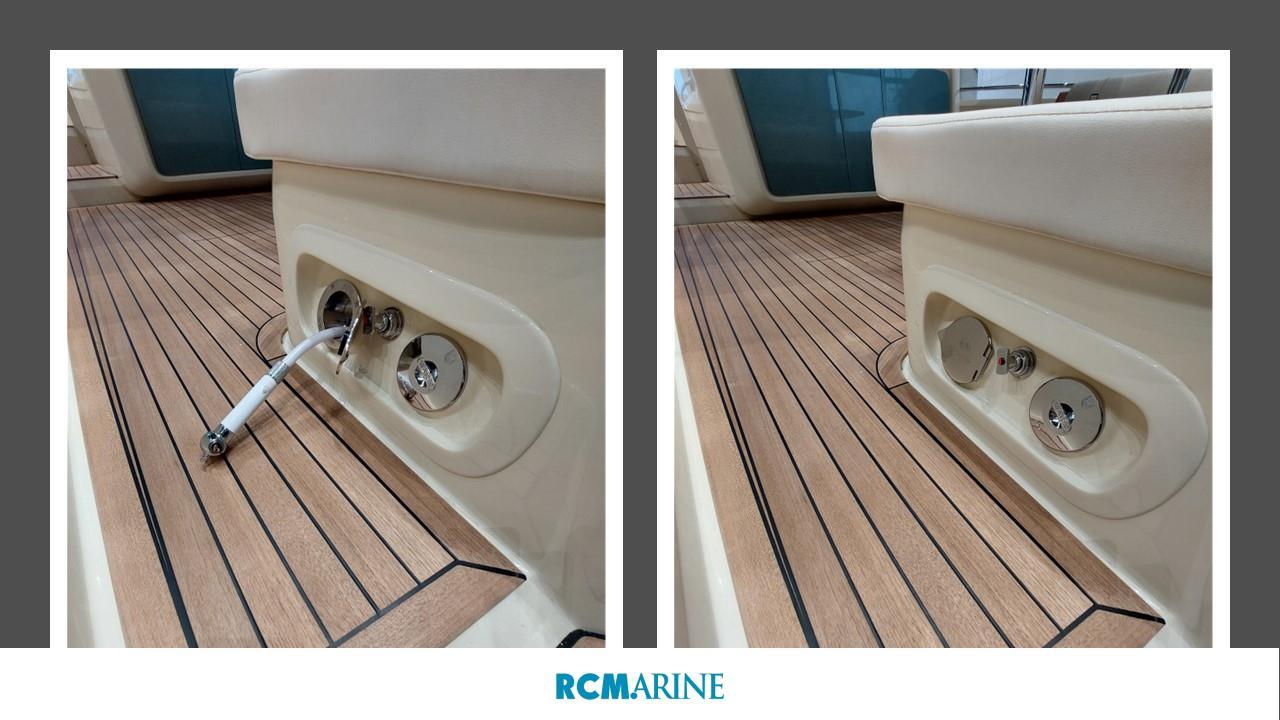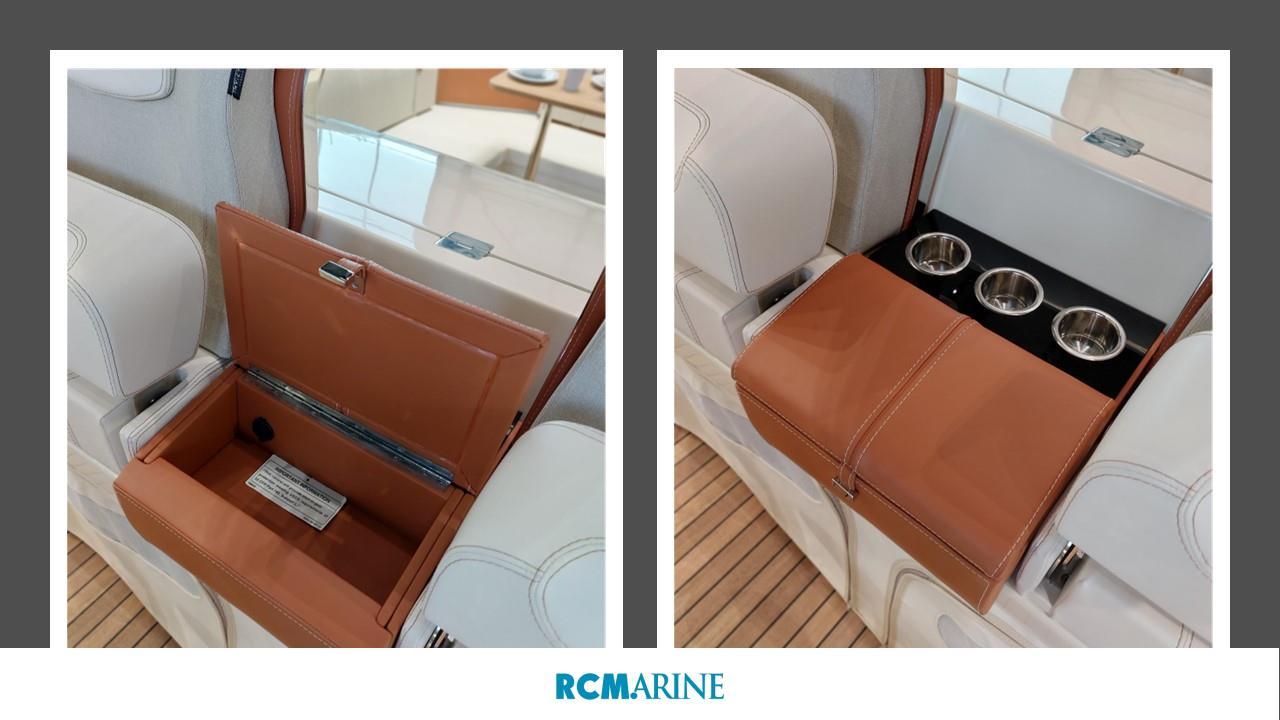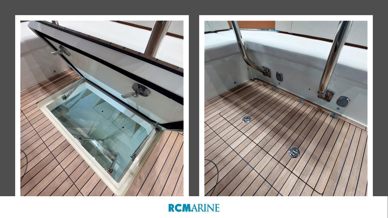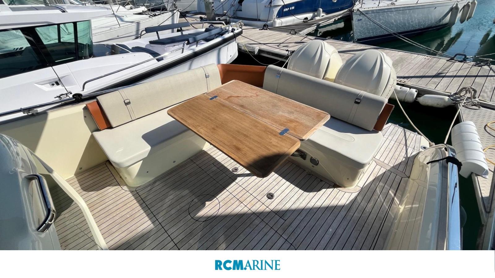 VHF Garmin 315, Refrigérateur cockpit, GPS MAP GARMIN 8410 XSV avec sondeur, Propulseur d'étrave, HI-FI Fusion, Bain de soleil, Table de cockpit
