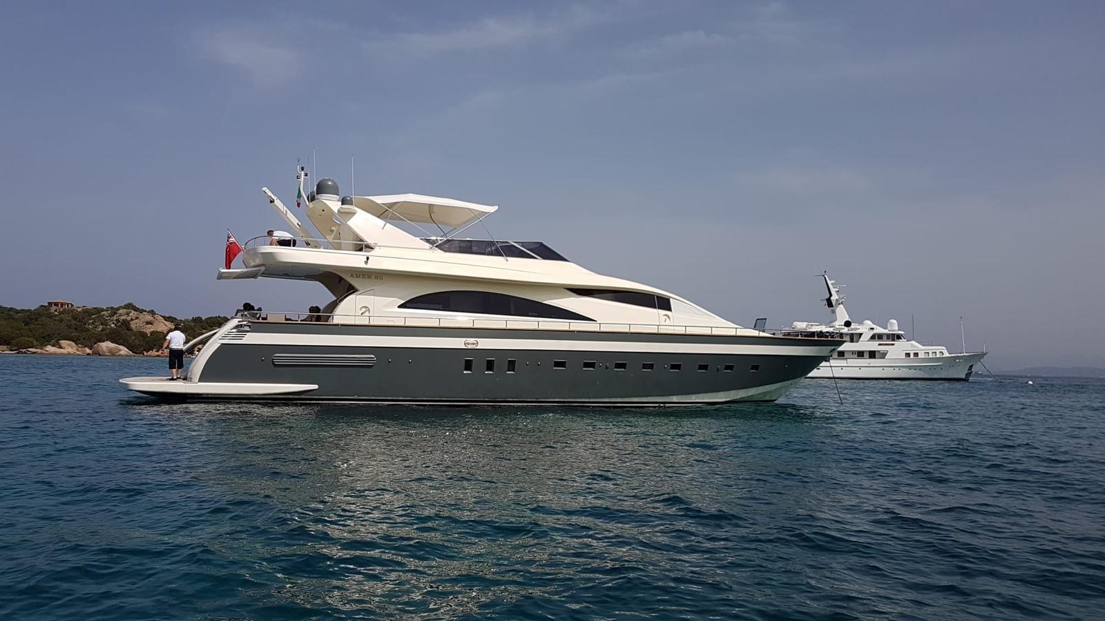Coque en V profond pour une excellente tenue en mer. Motorisation : 2 x Caterpillar C32 de 1670 CV, vitesse de croisière 24 nœuds, conso optimisée.