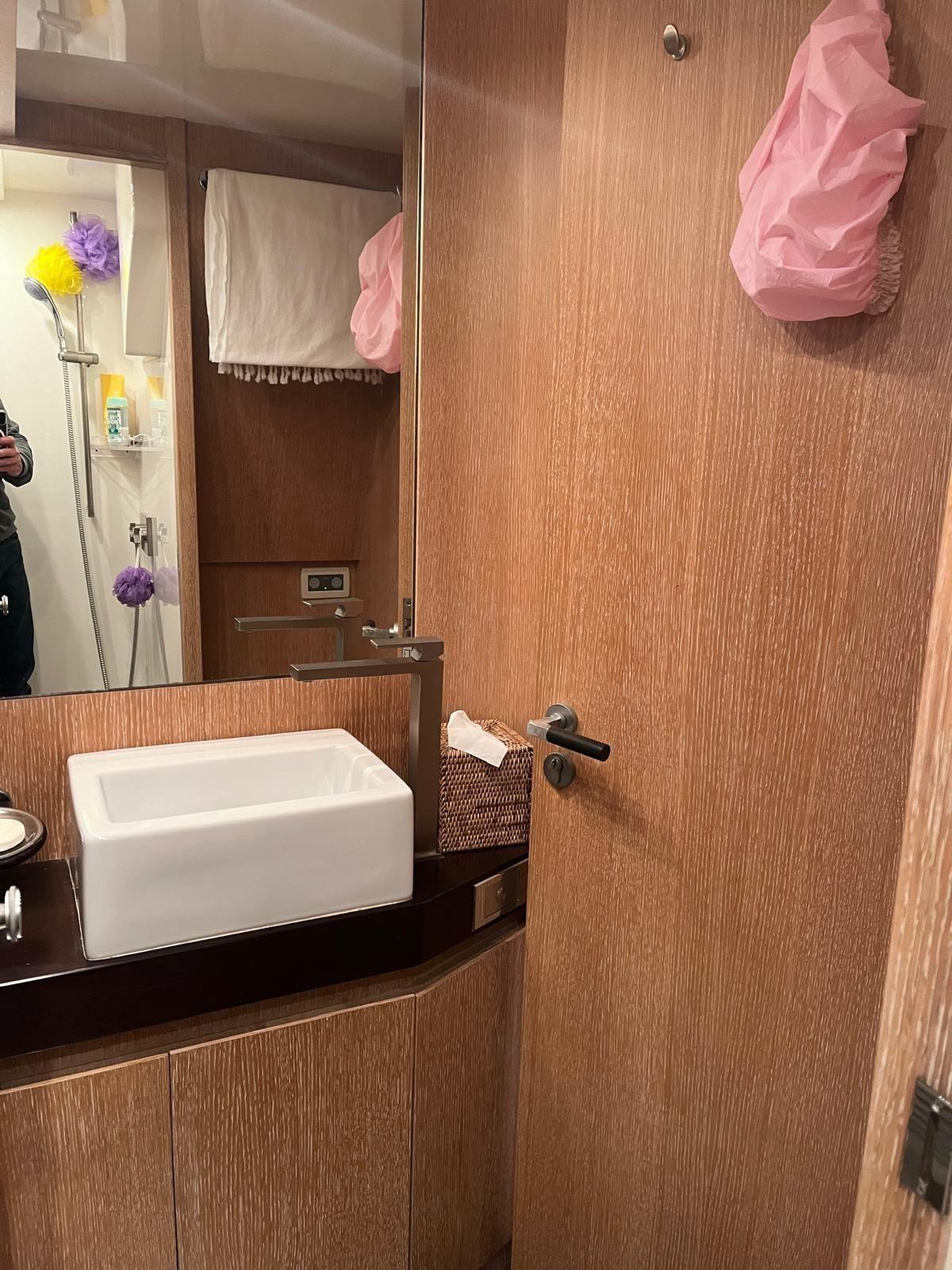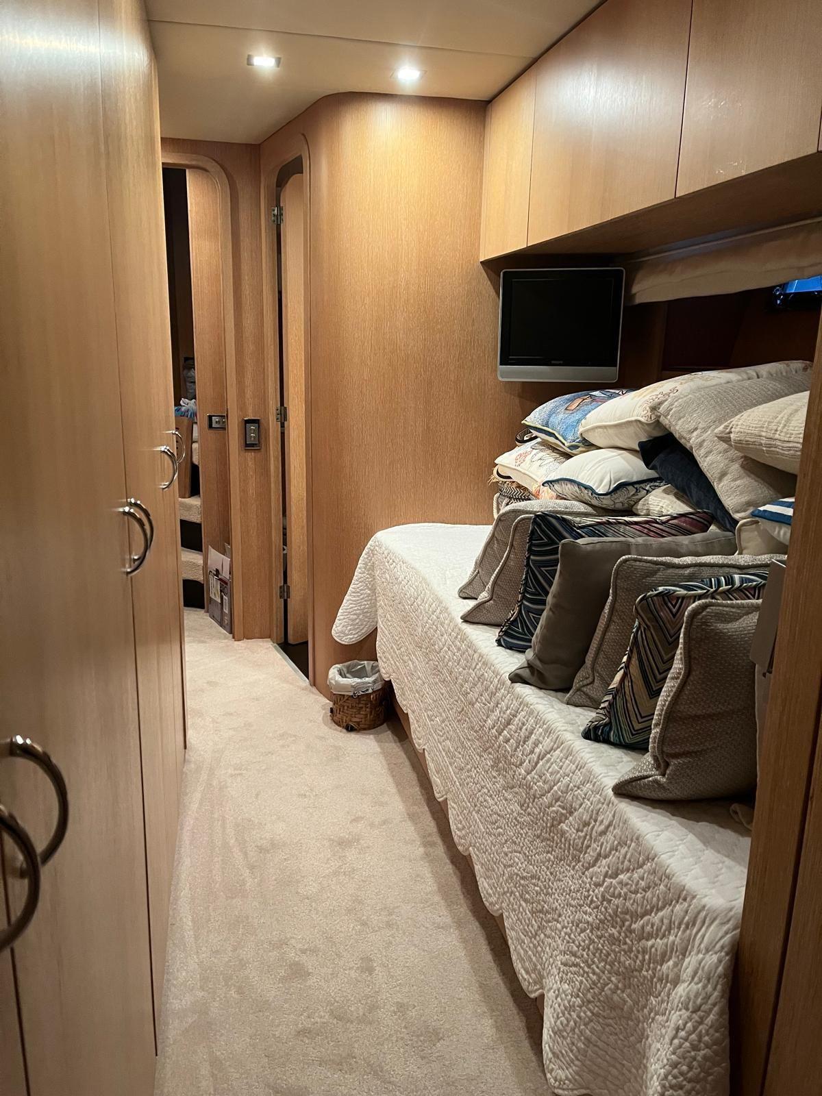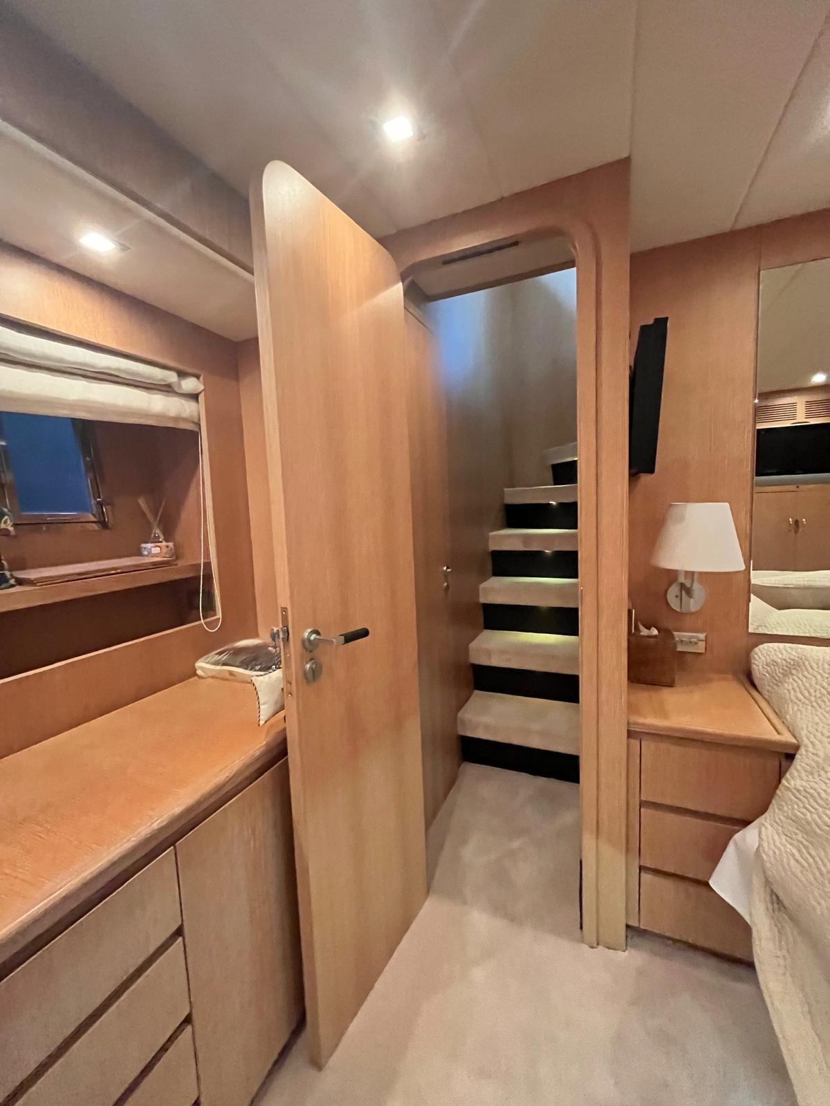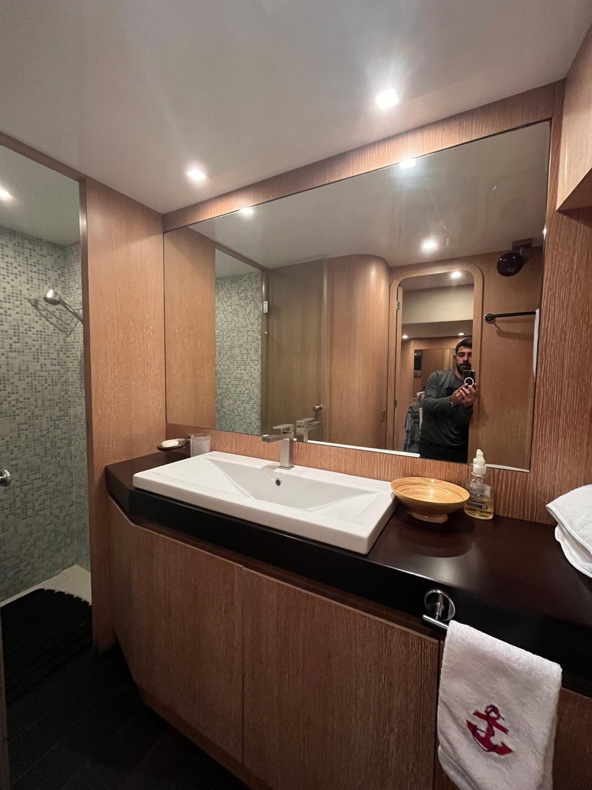 4 cabines + 2 pour l’équipage (tot. 10 couchages), 5 salles d’eau, aménagements intérieurs en bois.