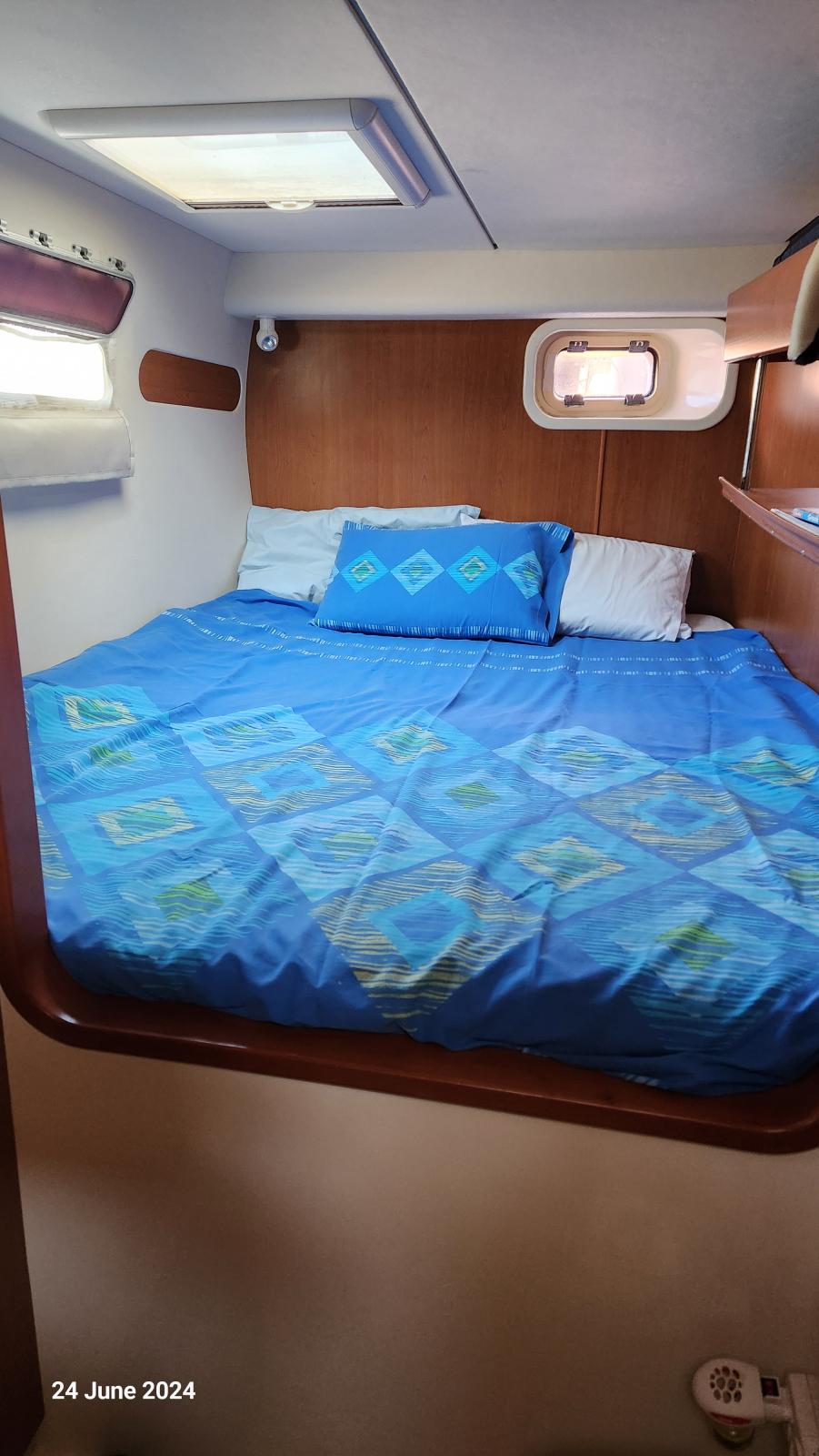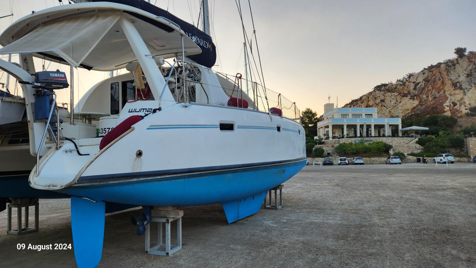 Ce catamaran a été entretenu sans compromis : hivernage à sec chaque année, révisions complètes des moteurs Volvo Penta 30cv après chaque saison (vidange, filtres, impellers). Aucun élément n’a été négligé. Le confort à bord a été préservé grâce à une utilisation familiale, douce et responsable.