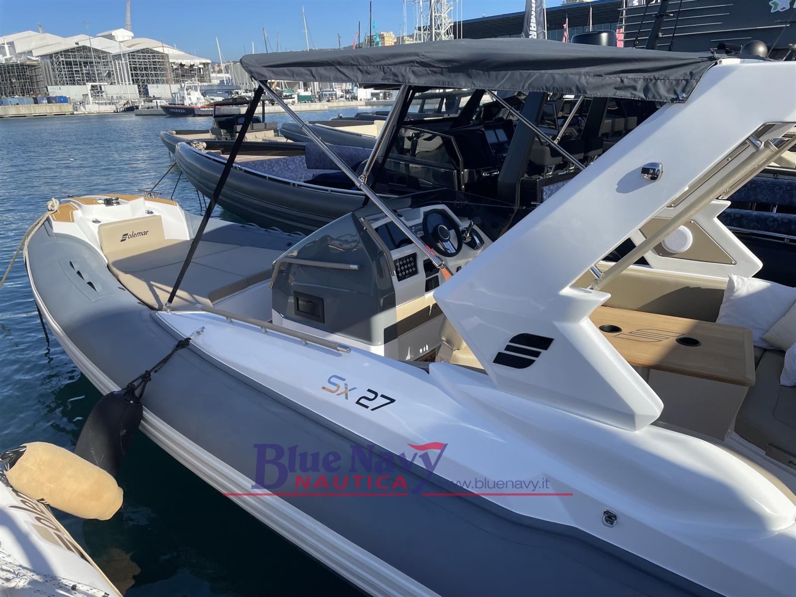 Le concessionnaire officiel Solemar - Blue Navy Nautica propose à la vente le bateau pneumatique de démonstration exposé au Salon nautique de Gênes 2025 - Solemar SX27 propulsé par un V8 VERADO Mercury blanc de 300 ch.
