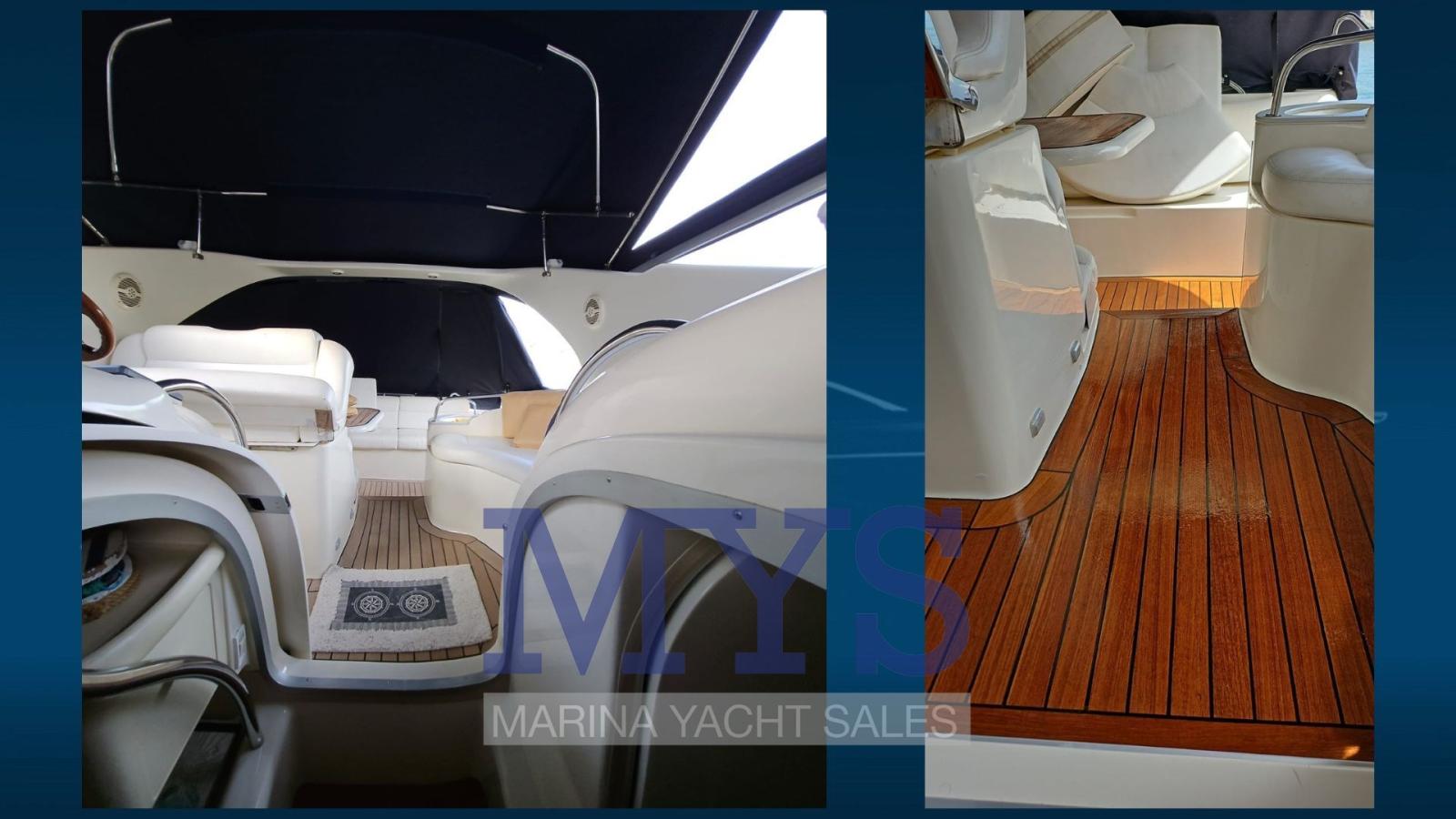Alarme moteur, Alarme de pompe de cale, Ancre (+ 60 mt di catena), Ouverture du compartiment moteur électrique, Eau sous pression, Radeau de sauvetage (scaduto), Trim hydraulique, 5 Batteries (x 200 Ah nuove 2024), Couleur spéciale (fascia Blu), Douche de cockpit, Phare de poursuite, Flaps hydrauliques, Extincteur(s) fixe(s), Lavabo dans le cockpit, Éclairage de courtoisie, Spots sous-marins (Blu), Passerelle (idraulica), Plateforme arrière (in Teak), Pompe de cale automatique, Pompe de cale manuelle, Porte latérale, Cockpit en teck, Prise de quai, Connexion eau sous pression à quai, Rollbar, Guindeau électrique, Echelle de bain, Système de filtration des eaux usées, table de cockpit, Table pliante de salon, Corne, Pont en teck.
