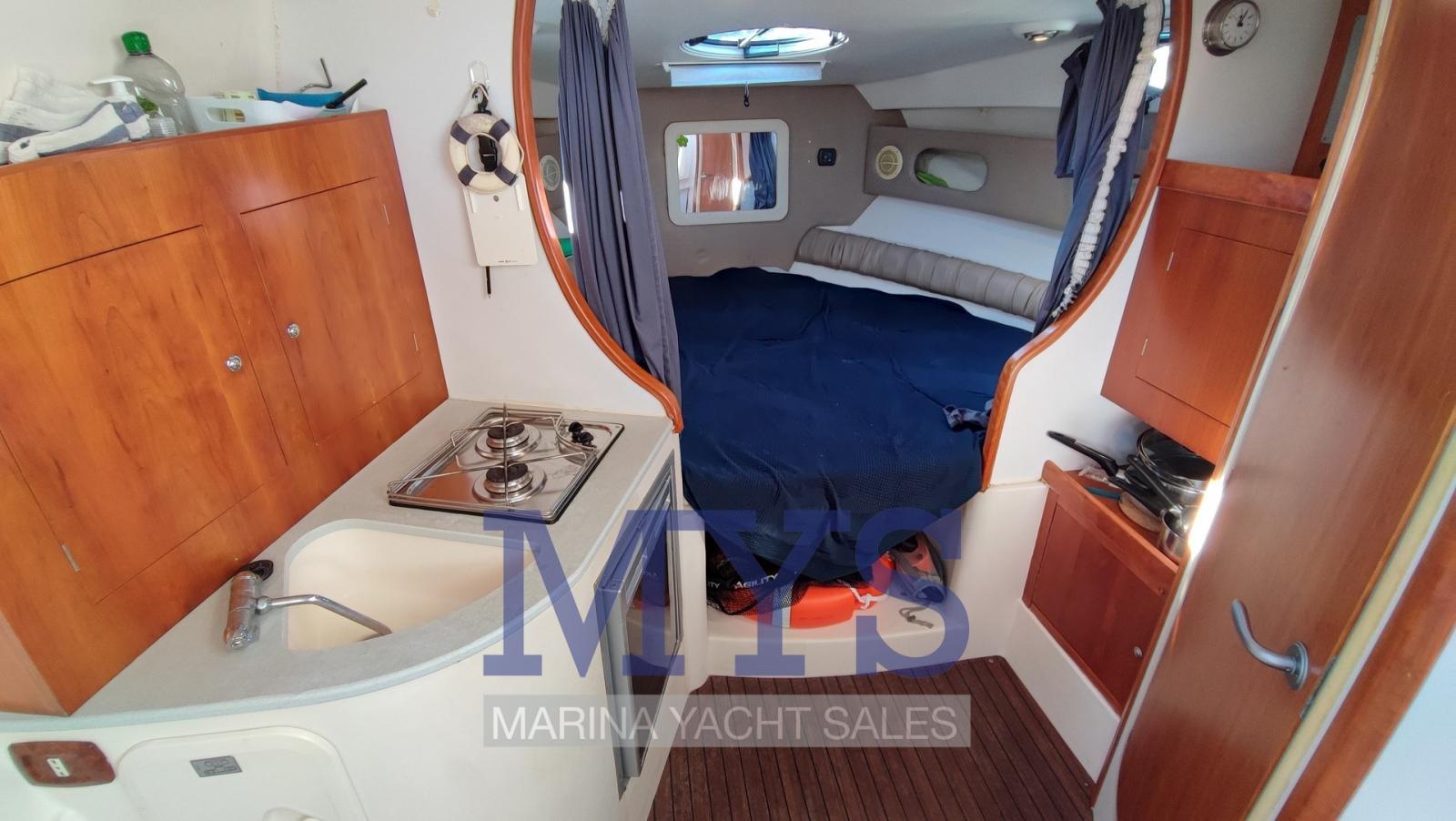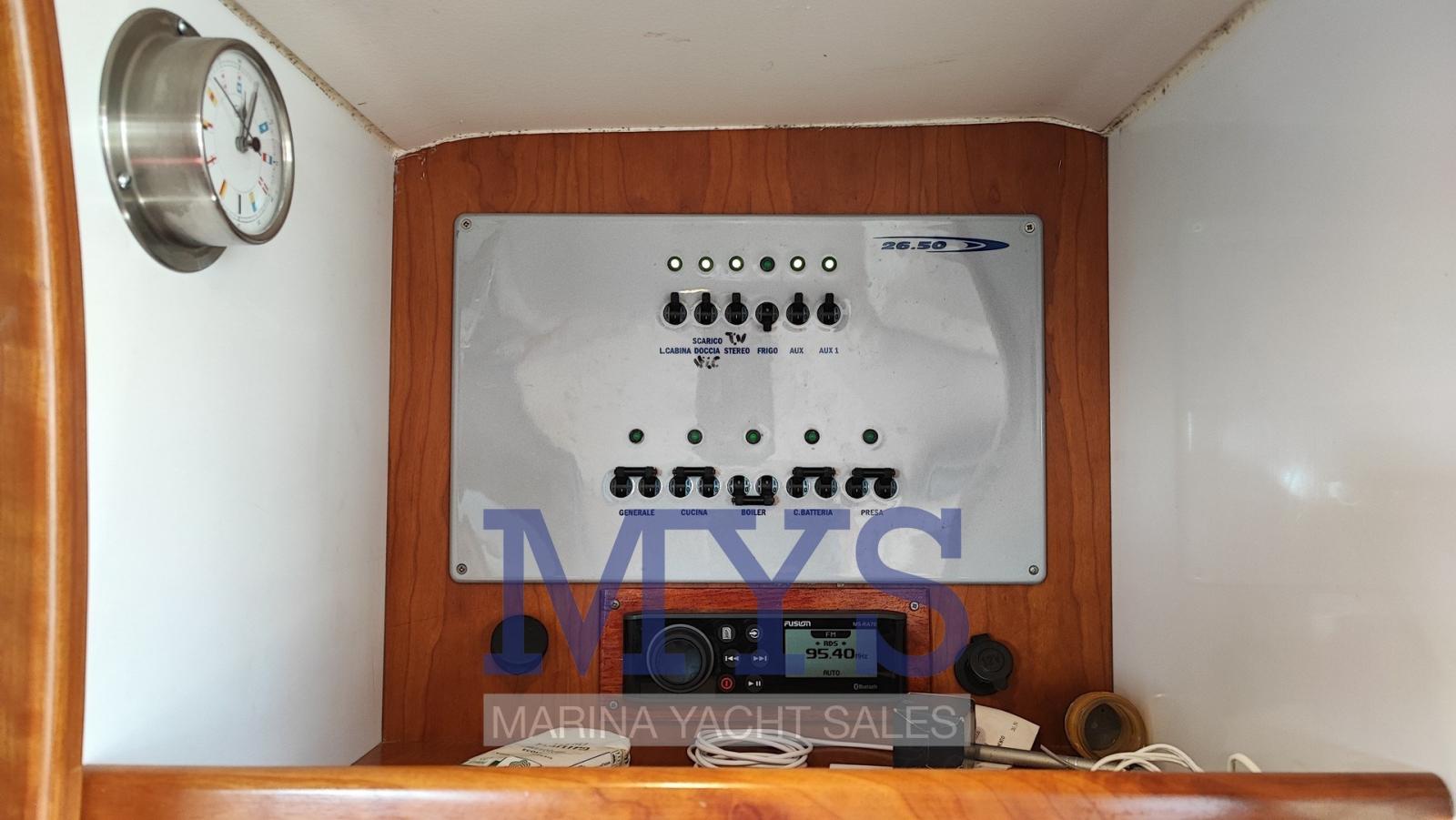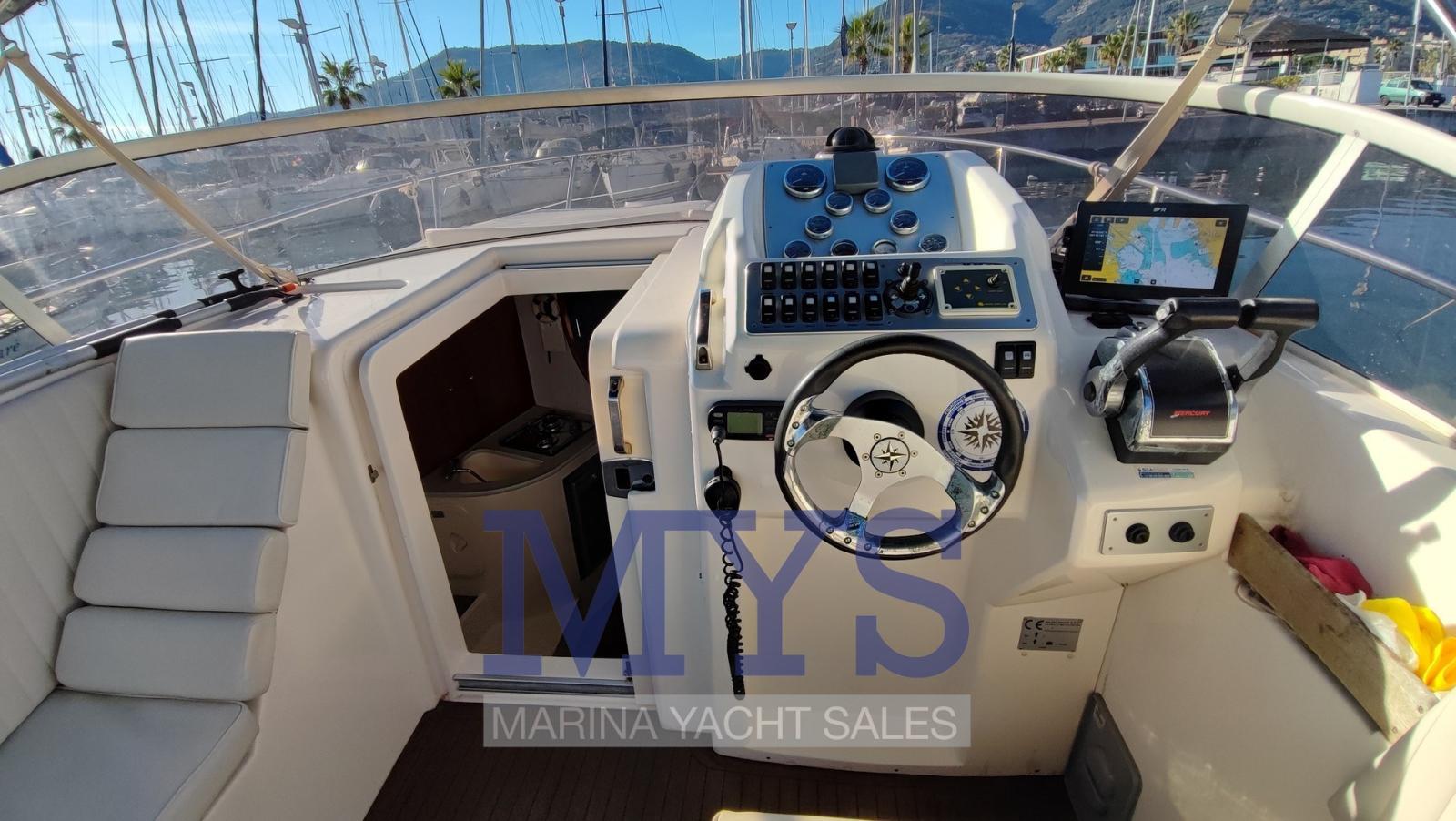 Alarme moteur, Alarme de pompe de cale, Ancre (10 kg + 40 mt di catena), Ouverture du compartiment moteur électrique, Eau sous pression, Radeau de sauvetage (scaduto), 3 Batteries (x 100 Ah), Couleur spéciale (fascia blu), Douche de cockpit, Flaps hydrauliques, Crochet de remorquage pour ski nautique, Lavabo dans le cockpit (+ 1 fuoco a gas), Éclairage de courtoisie, Spots sous-marins (blu), Plateforme arrière (In teak), Pompe de cale automatique, Pompe de cale manuelle, Porte latérale, Cockpit en teck, Prise de quai, Rollbar, Guindeau électrique, Echelle de bain, table de cockpit, Table pliante de salon, Corne.
