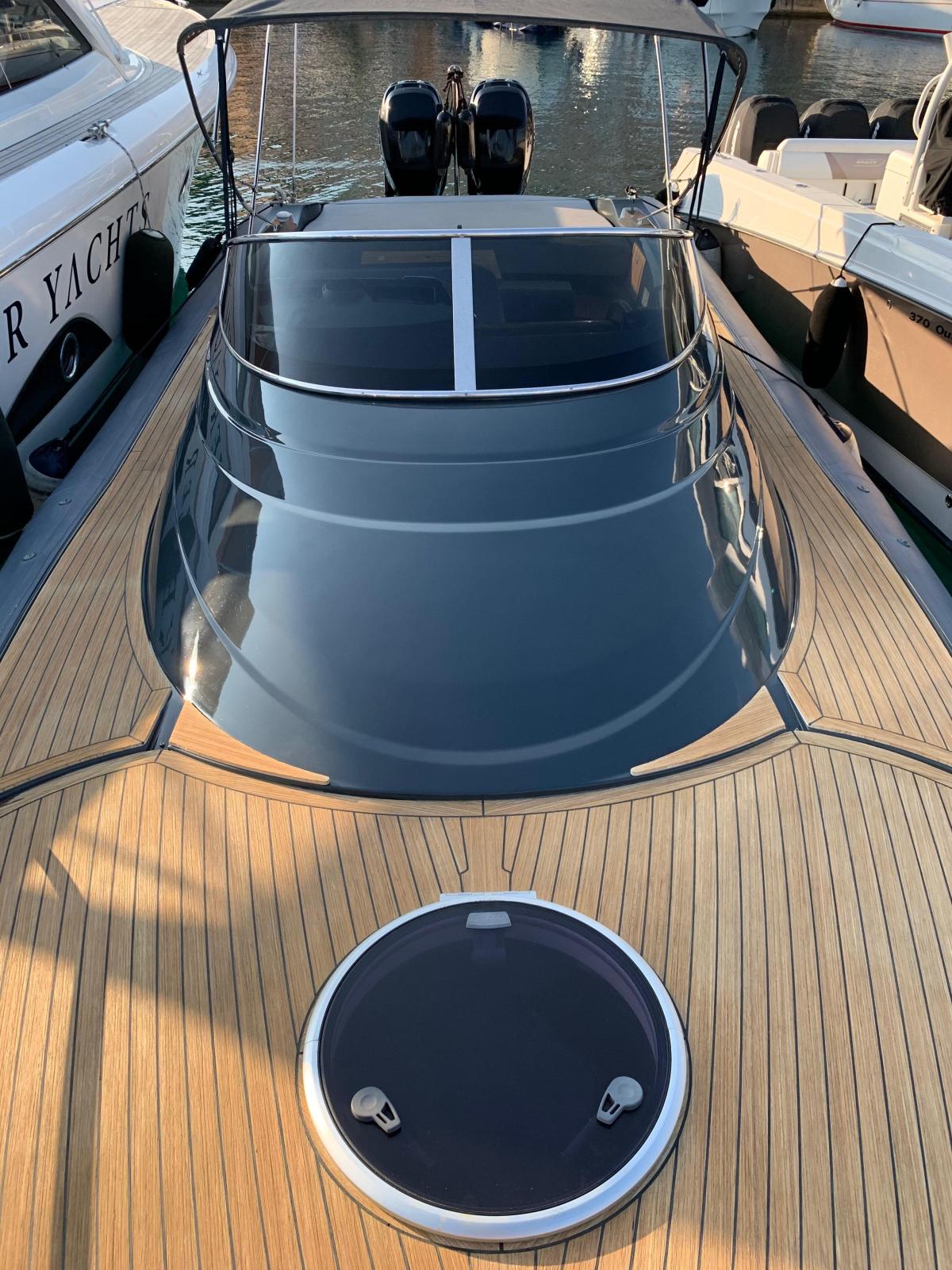Ce modèle est motorisé par deux Mercury de 300 chevaux, récemment équipés d’une hélice performance qui améliore la vitesse, la maniabilité et réduit la consommation. Le bateau affiche un excellent état général avec de nombreuses améliorations récentes. Le propriétaire en prend grand soin, ce qui se reflète dans l’entretien méticuleux et l’état général de l’unité.