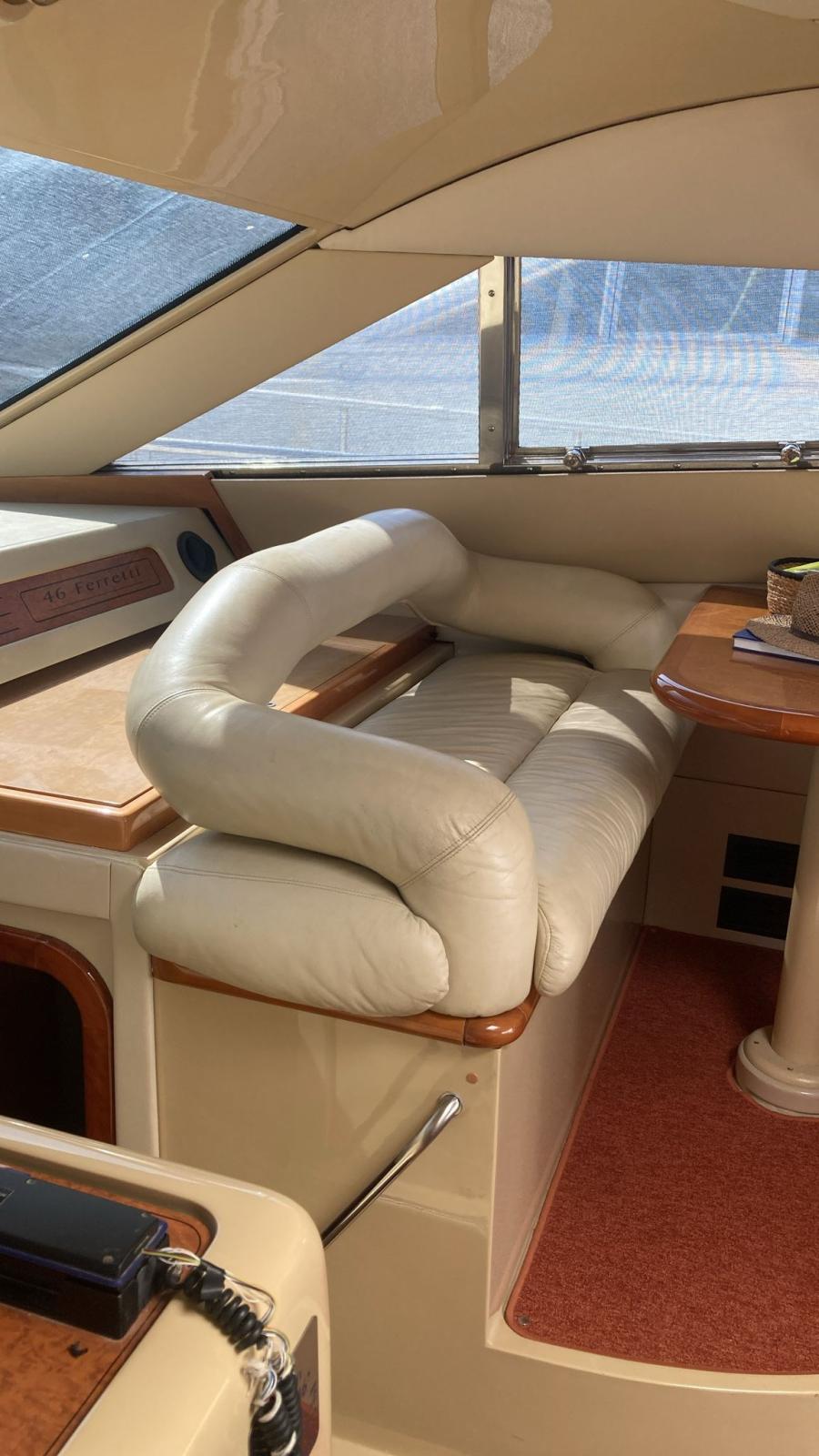 FERRETTI 46 DE 200 AVEC DEUX VOLVO PENTA DE 480 CH AVEC 920 HEURES MOTEUR. 1 GROUPE ÉLECTROGÈNE KOHLER 9KW. BATEAU ENTIÈREMENT RÉAMÉNAGÉ À L’INTÉRIEUR ET AVEC COUSSINS EXTÉRIEURS. CABINE DOUBLE AVANT AVEC SALLE DE BAIN AVEC BIDET ET DOUCHE, CABINE D’INVITÉS AVEC DEUX LITS PLATS, UNE AUTRE CABINE D’INVITÉS AVEC DEUX LITS PLATS ET SALLE DE BAIN AVEC DOUCHE. CUISINE SÉPARÉE, GRAND SALON AVEC COIN REPAS INTÉRIEUR. FLY BRIDGE AVEC DINETTE . COCKPIT EN TECK. CABINE ÉQUIPAGE AVEC TOILETTES.