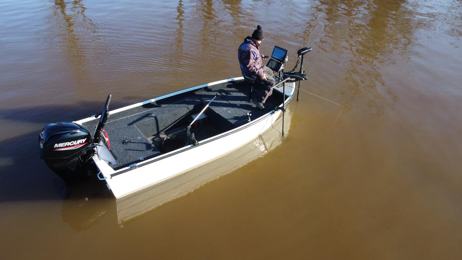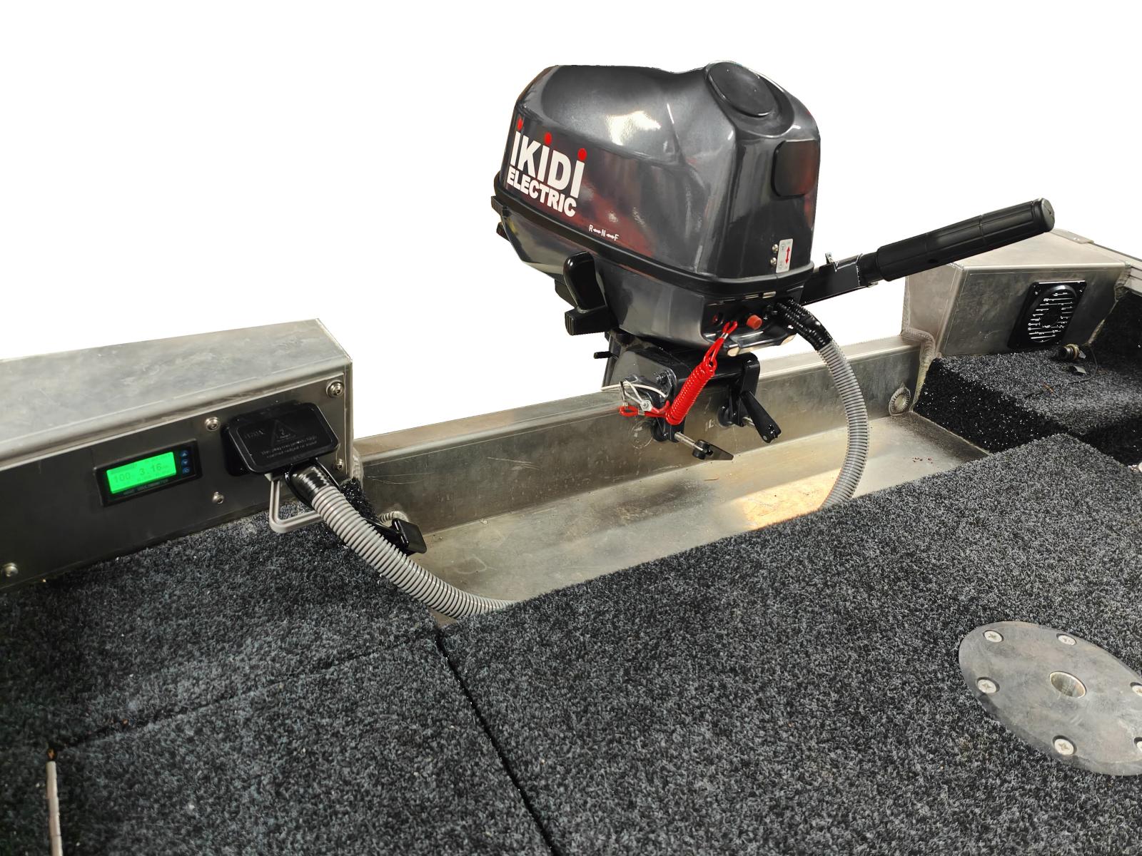 Les bass boats pro Fishing 420 sont également prévus pour recevoir une motorisation électrique hors bord de forte puissance et l'intégration de sa batterie dans le vaste coffre arrière.
