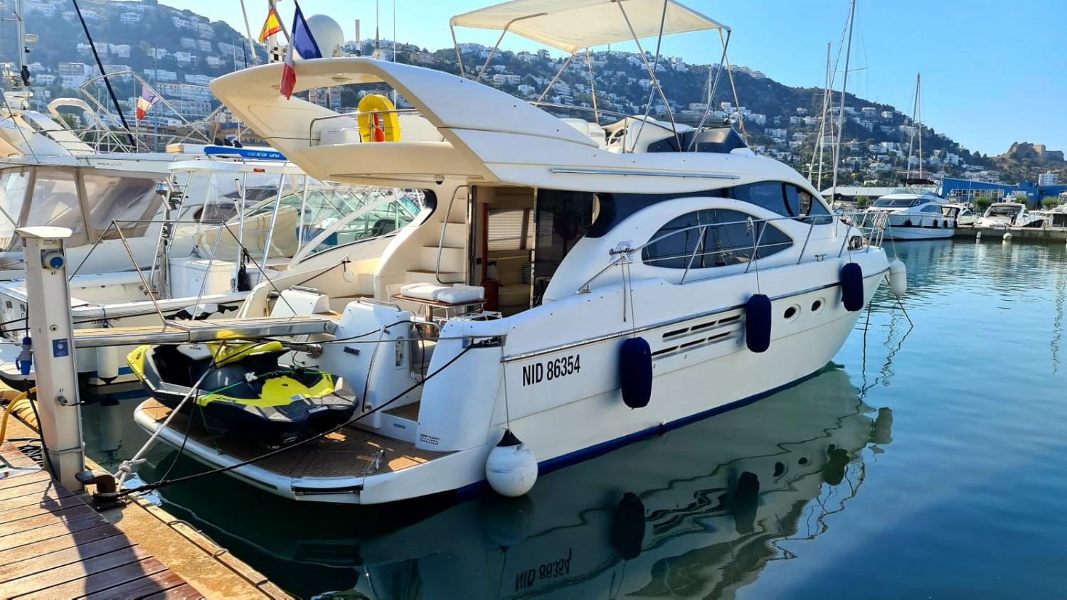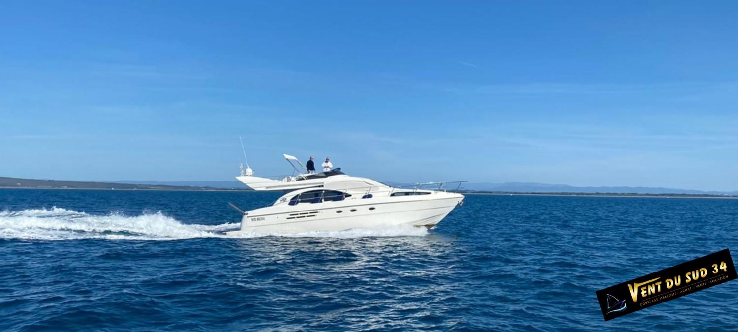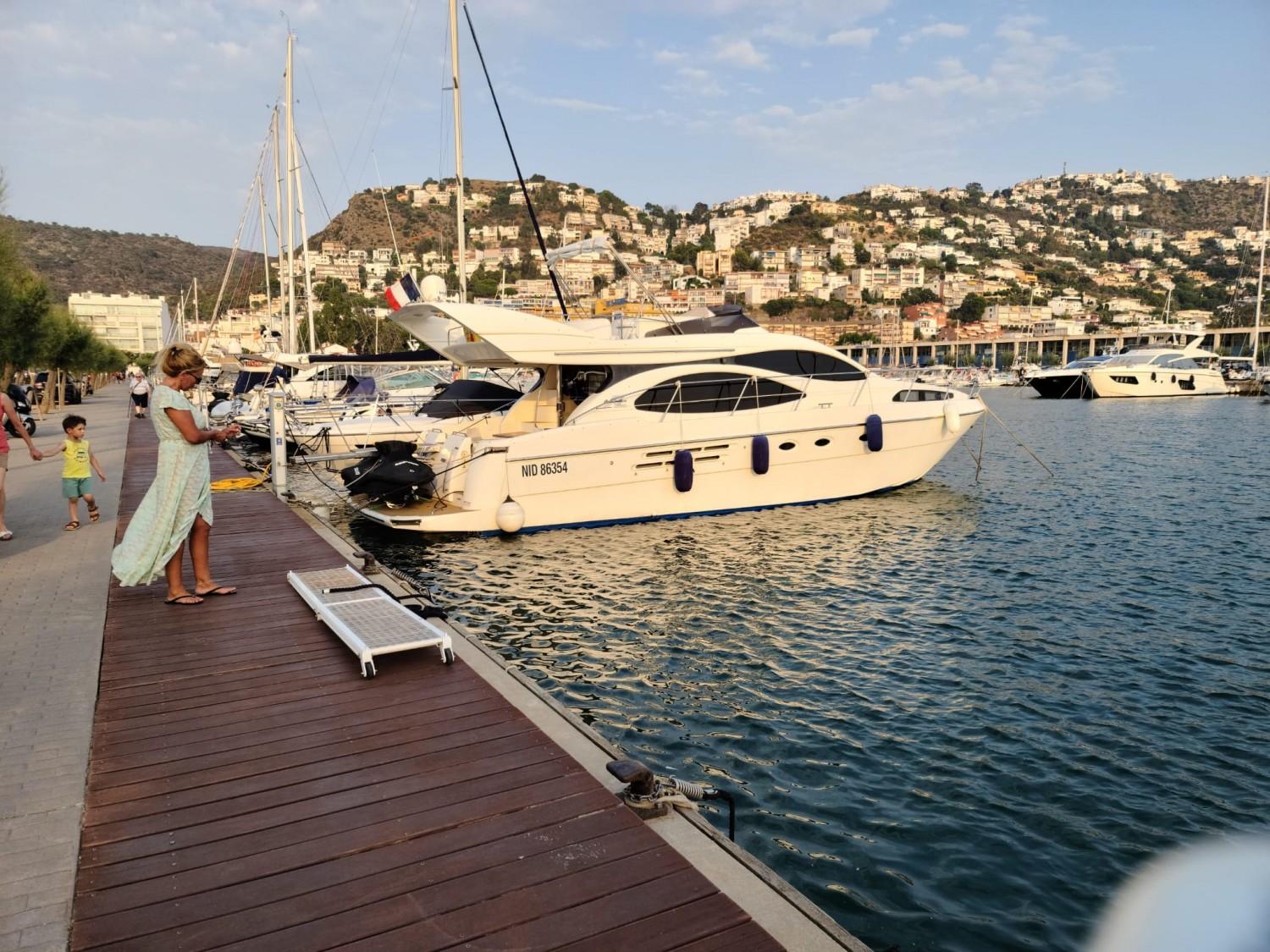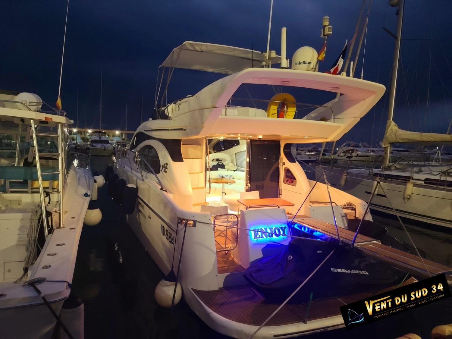Azimut Cet Azimut 46 Flybridge Yacht rénové est un navire spacieux conçu pour ceux qui exigent le plus grand confort et le plus grand style. Ce yacht présente un extérieur élégant et classique, avec des lignes épurées et un profil prononc. Montez à bord et vous serez accueilli par un intérieur acceuillant, ses selleries neuves et ses finitions authentiques. Le salon baigné de lumière naturelle offre des vues panoramiques sur le paysage marin environnant, les stores sont neufs, sa Box wifi et sa grande TV satellite rempliront leur office pour vous divertir. Les aménagements sont généreux, avec 2 cabines pouvant accueillir confortablement jusqu'à 4 personnes. La suite principale offre de nombreux espaces de rangement et une salle de bain privée avec une douche spacieuse. Sur le pont, l'Azimut 46 Flybridge offre de nombreux espaces pour se détendre et se divertir, y compris un flybridge accueillant un grand bain de soleil. Le pont arrière est l'endroit idéal pour les repas en plein air, avec son atmosphère led. Propulsé par 2 moteurs Caterpillar 3208 Turbo, le yachtcontrôleur facilite les man?uvres, ce yacht offre de grandes performances assurant une navigation douce et confortable. La nouvelle plate-forme de bain flexitex vous ravira. Que vous naviguiez le long de la côte ou que vous exploriez de nouveaux horizons, l'Azimut 46 Flybridge est le navire idéal pour des sorties de jour ou des escales. Un amarrage est disponible à la vente ou à la location