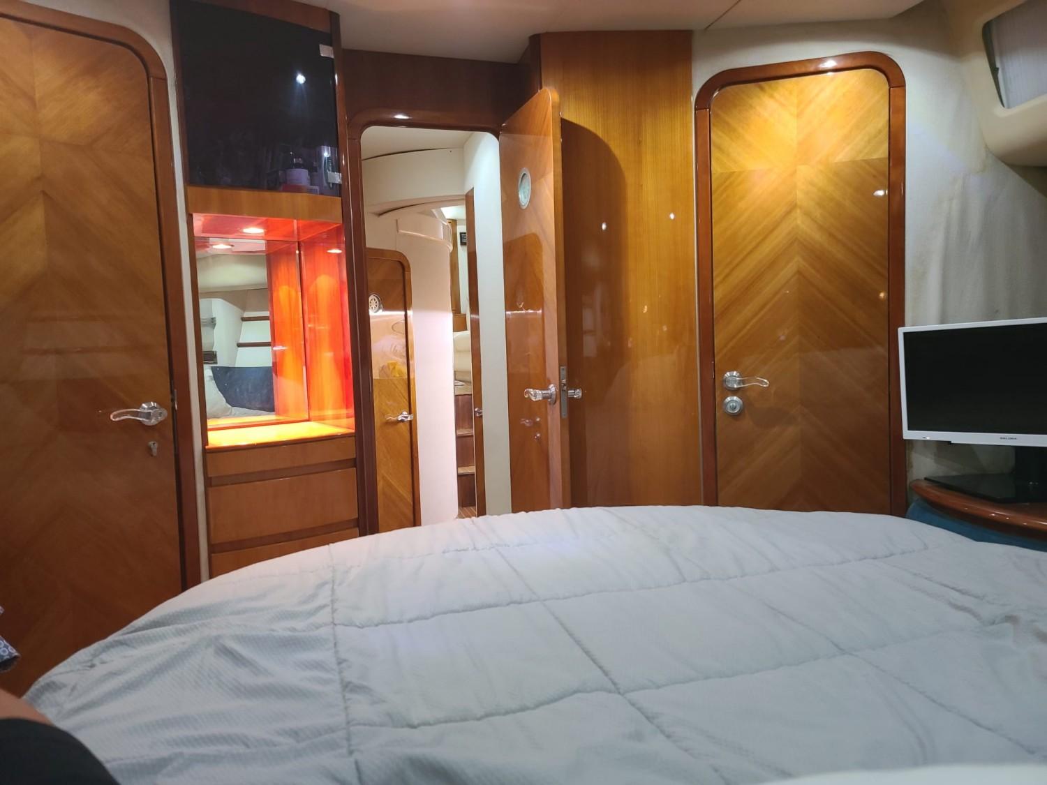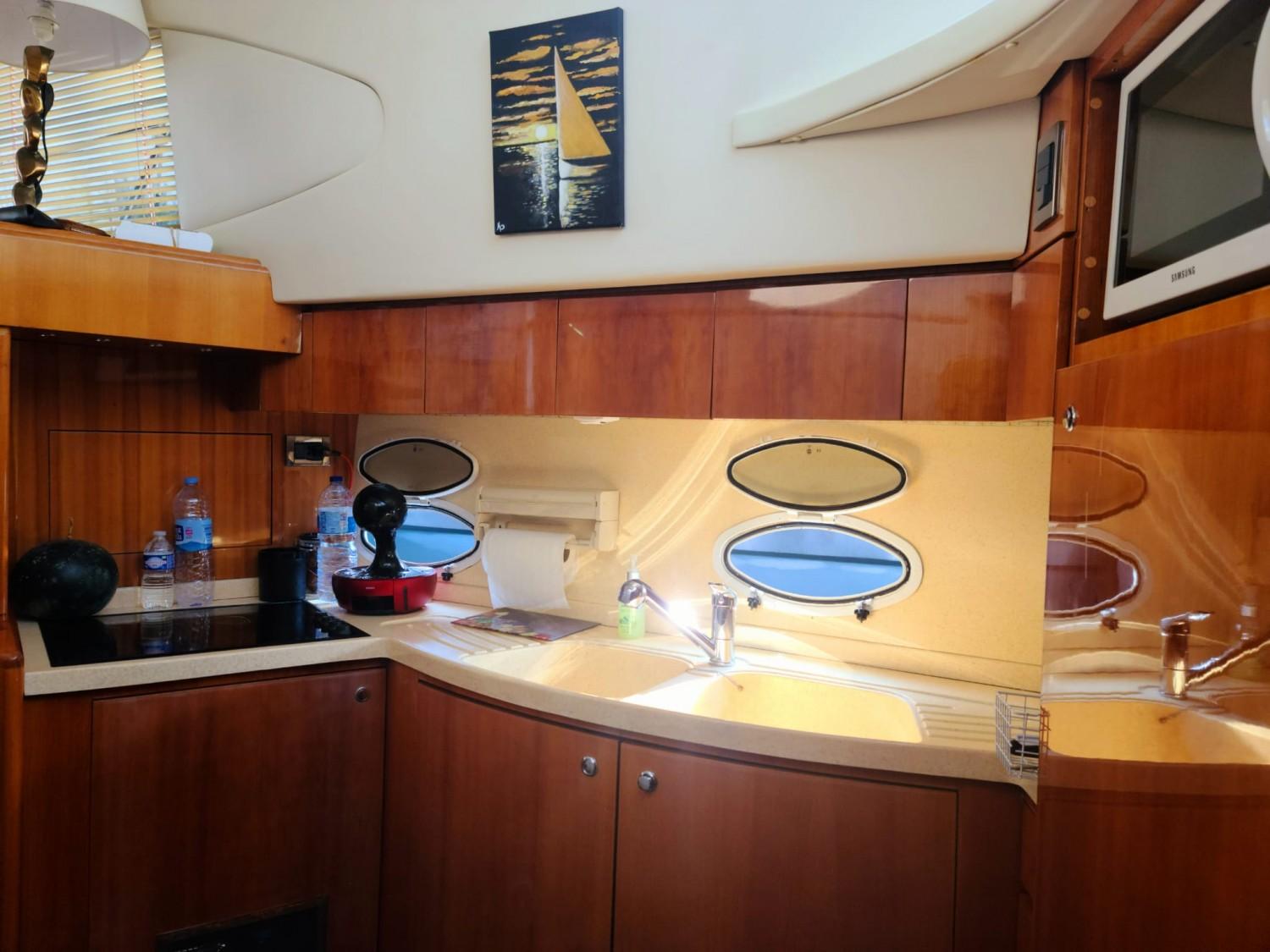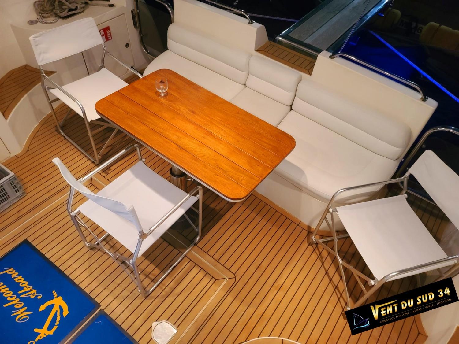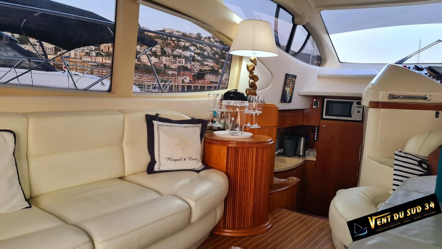 Azimut Cet Azimut 46 Flybridge Yacht rénové est un navire spacieux conçu pour ceux qui exigent le plus grand confort et le plus grand style. Ce yacht présente un extérieur élégant et classique, avec des lignes épurées et un profil prononc. Montez à bord et vous serez accueilli par un intérieur acceuillant, ses selleries neuves et ses finitions authentiques. Le salon baigné de lumière naturelle offre des vues panoramiques sur le paysage marin environnant, les stores sont neufs, sa Box wifi et sa grande TV satellite rempliront leur office pour vous divertir. Les aménagements sont généreux, avec 2 cabines pouvant accueillir confortablement jusqu'à 4 personnes. La suite principale offre de nombreux espaces de rangement et une salle de bain privée avec une douche spacieuse. Sur le pont, l'Azimut 46 Flybridge offre de nombreux espaces pour se détendre et se divertir, y compris un flybridge accueillant un grand bain de soleil. Le pont arrière est l'endroit idéal pour les repas en plein air, avec son atmosphère led. Propulsé par 2 moteurs Caterpillar 3208 Turbo, le yachtcontrôleur facilite les man?uvres, ce yacht offre de grandes performances assurant une navigation douce et confortable. La nouvelle plate-forme de bain flexitex vous ravira. Que vous naviguiez le long de la côte ou que vous exploriez de nouveaux horizons, l'Azimut 46 Flybridge est le navire idéal pour des sorties de jour ou des escales. Un amarrage est disponible à la vente ou à la location