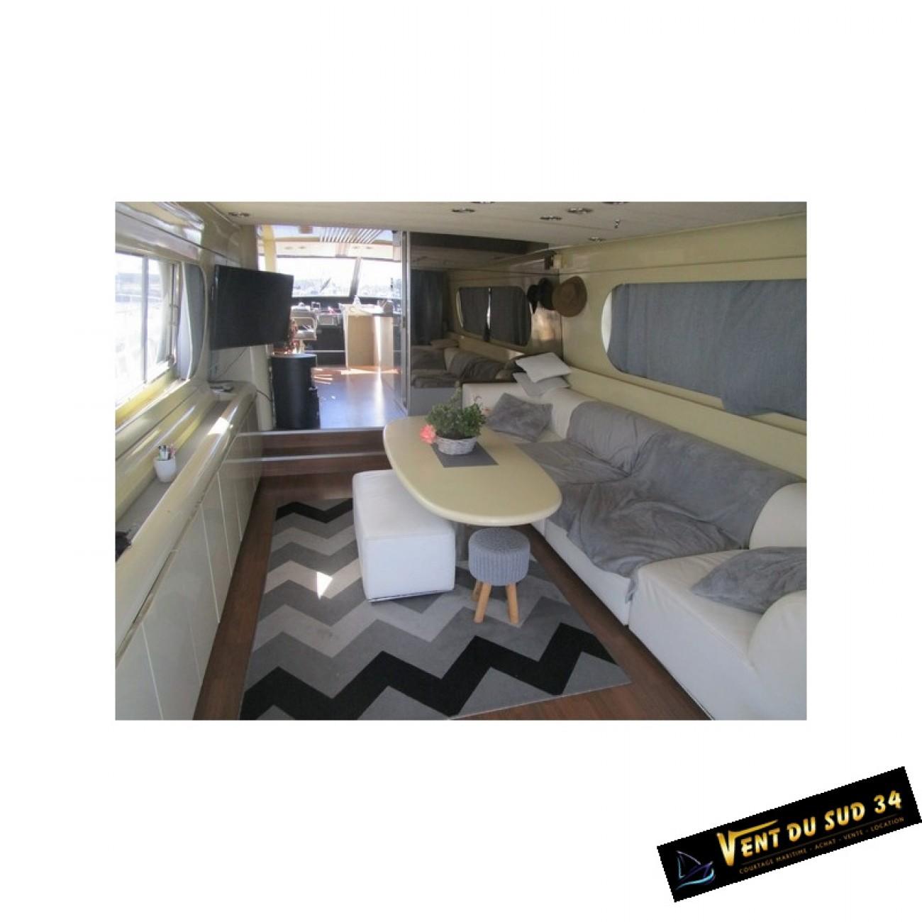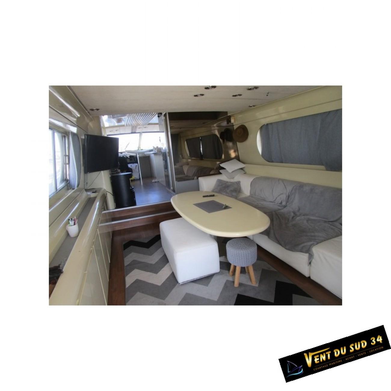 Equipement de ce Yacht LEOPARD 23 en bois moulé : coque bois moulé, 3 cabines très spacieuses, 2 salles d?eau avec WC électriques et douche + baignoire dont une cabine propriétaire très spacieuse, 10 couchages, sécurité + de 6 miles, moteur 2 x détroit de 750 CV et 1400, GPS couplé sondeur + radar, pilote automatique, VHF, circuit 220 v et 24 v, lave-linge, four, micro-onde, frigo + congélateur, plaque à induction, pont en teck refait, grande plateforme arrière + échelle de bain, bain de soleil, table de cockpit, mat de charge, groupe électrogène, taud d?hivernage et taud d?été, guindeau hydraulique, passerelle hydraulique, annexe rigide avec moteur HB 20 cv, place de port?.