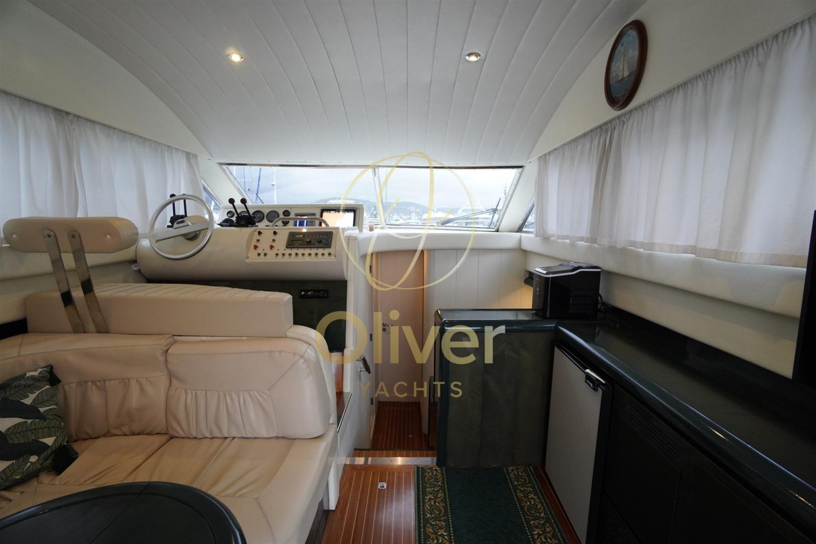 Alarme gaz, Alarme moteur, Alarme de pompe de cale, Eau sous pression (Nuova), Radeau de sauvetage (Nuovo), Douche de cockpit, Double barre à roue, Propulseur d'étrave (Nuova), Phare de poursuite, Flaps hydrauliques, Indicateurs de flaps, Éclairage de courtoisie, Passerelle (Opacmare motore nuovo), Plateforme arrière (Fissa), Pompe de cale automatique, Pompe de cale manuelle, Porte latérale, Cockpit en teck, Prise de quai, Connexion eau sous pression à quai, Guindeau électrique, Echelle de bain (Nuova), Corne.